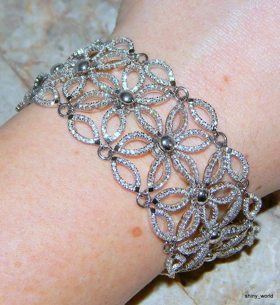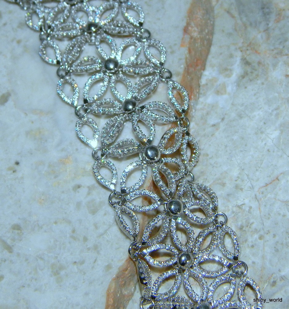 Item Type: Bracelet Weight: 60.g Material: Sterling Silver Main stone: White Topaz Other stones: - Width (widest section): 1 1/4 inch Inner circumference: 7 1/2 inch Clasp: box Stamp / Mark: 925 Condition: New Main color: white