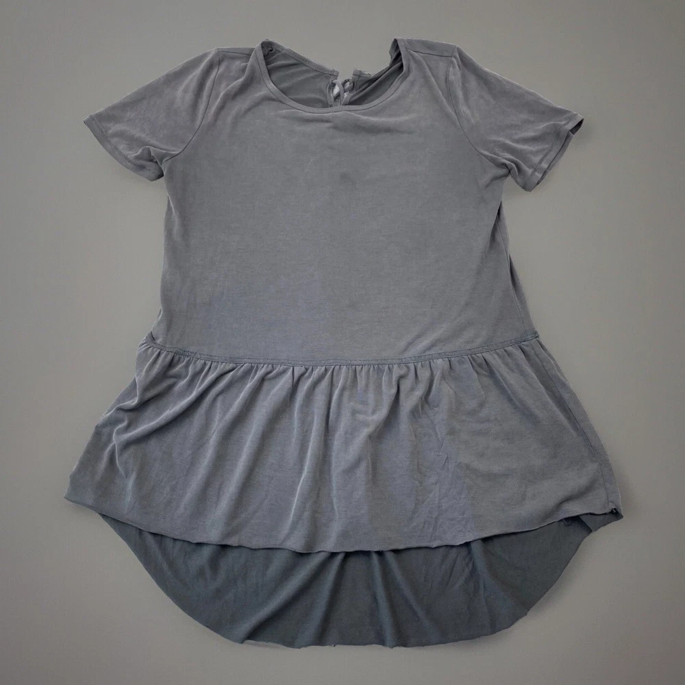 Mote Top Women's Sz M Gray Short Sleeve Drop Waist Tunic Blouse
