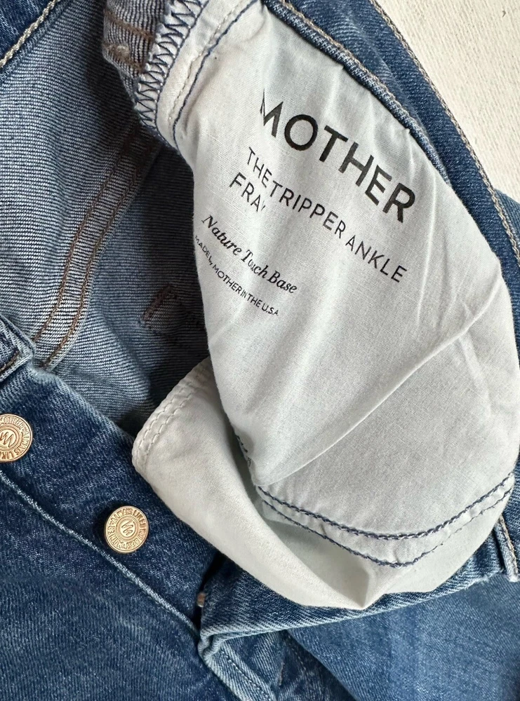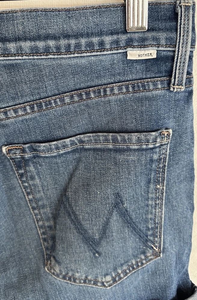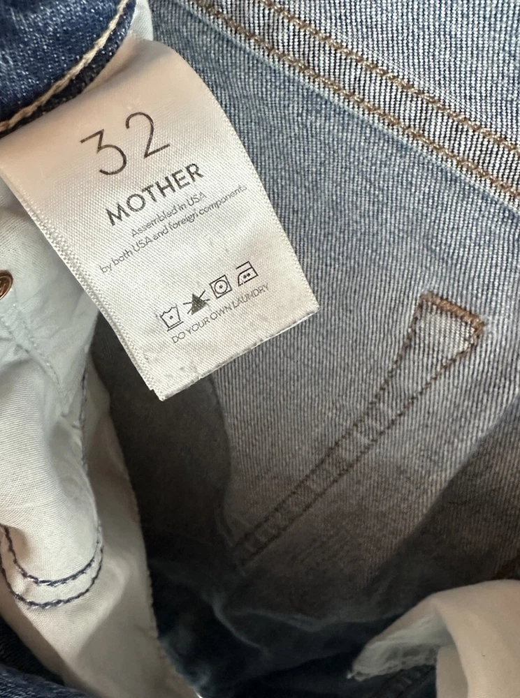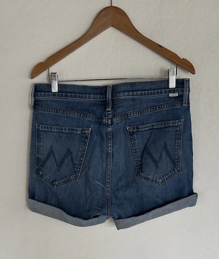These Mother Jean shorts are a must-have for any fashion-forward woman. The distressed denim and stretchy cotton blend fabric make for a comfortable and stylish fit, perfect for casual or travel occasions. The 5-pocket design with a zip closure and flat front provides both functionality and a trendy look. These shorts are machine washable and come in a beautiful shade of blue, making them a versatile addition to any wardrobe. Ideal for summer, fall, and spring, these shorts are available in women's size 32 and are sure to become a favorite in your collection. PLEASE NOTE: These are jeans that have been customized into shorts. Great condition. Some small spotting on front right side as shown in photos.