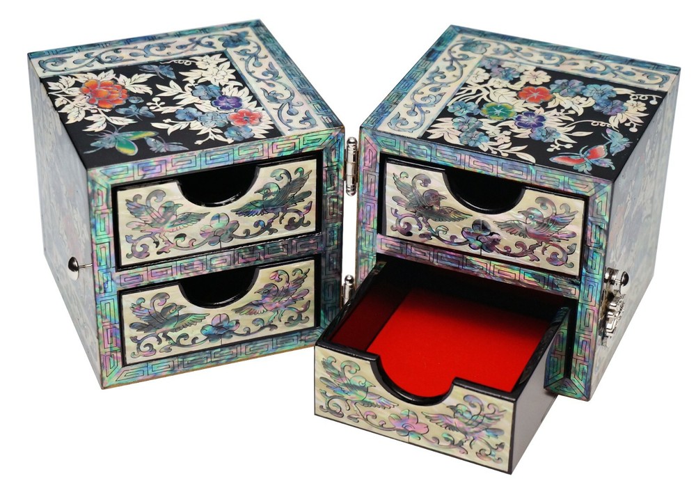 Korean Handmade Mother of Pearl I nlaid Nacre Dual Box 4 Drawer Jewelry Box Ring Necklace Earring Bracelet Brooch Case Storage Organizer Chest [Features] • High quality and Lots of drawer. • Korean traditional natural handicrafts made by a master, Mother of pearl inlaid wood, Natural lacquer finish. • Peony flower & Bird patterns symbolize bringing blessings and defeating disasters. • The Best Gift for You and Your Loved Ones. [Specification] • Design: Dual, 4 Drawer • Color: Black • Pattern: Peony flower & Bird, Square • Material: Mother of Pearl (Nacre), Wood, Lacquer, Velvet • Dimensions (LWH): 6.7 x 3.3 x 3.3 in (170 x 85 x 85 mm) • Country of Origin: Korea, South [History and Transformation] The traditional Korean Handmade Mother of Pearl crafts is called 'Najeonchilgi'. It symbolizes eternal love and friendship and wishes for the harmony and prosperity of the family. It is made by craftsman through several manual processes. It is also a work of art that Korean kings and noblemen have loved for more than a thousand years, and today, various designs of Najeonchilgi are still being made. [Shipping] We usually use eGS, eBay's official overseas delivery program. • Standard shipping: 10 ~ 25 working days • Expedited shipping: 3 ~ 10 working days Please check if your address is correct. We only ship to the address listed on eBay. Unpredictable things, including weather conditions, shipping problems, customs policies, etc., can take more time than usual. Please understand. [Customer Support] We aim to provide fantastic purchasing experience and service to all customers with excellent Korean handicrafts. If you have any questions or information you need, feel free to send us a message and we'll answer as soon as possible. [Customer Feedback] Your satisfaction is our goal. Please give us feedback regarding our product and service. Your good feedback is valuable to us. Please help us to serve you better. We will do our best to resolve any issue for your complete satisfaction. [Note] Since these crafts are handicrafts, the design, color, decoration, size, etc. may vary, The color and design of mother of pearl may be different or reversed from the photos, and will be sent randomly. Accessories in the photos are not included and the price is per piece. Import duties, taxes, and charges are not included in the item price or shipping cost. These charges are the buyer's responsibility.