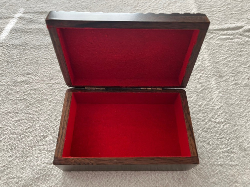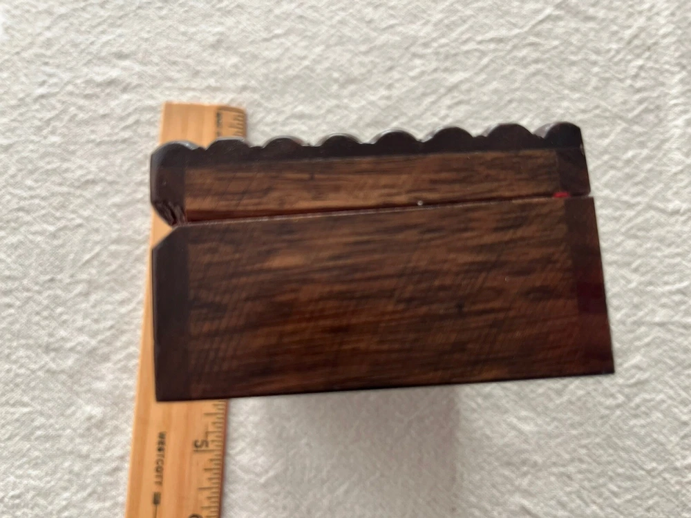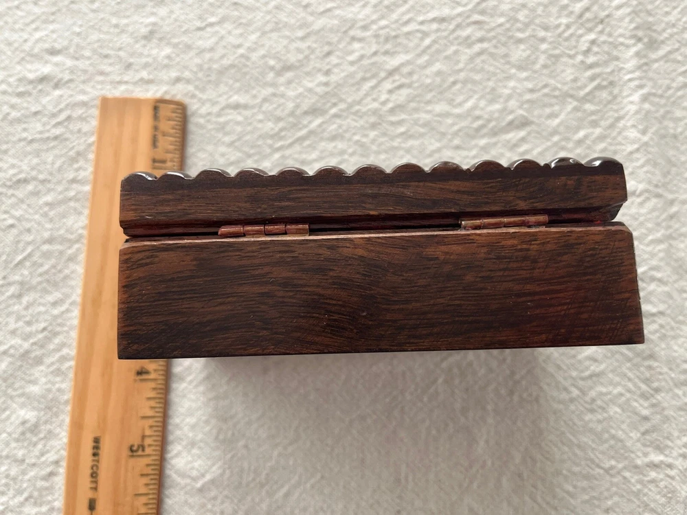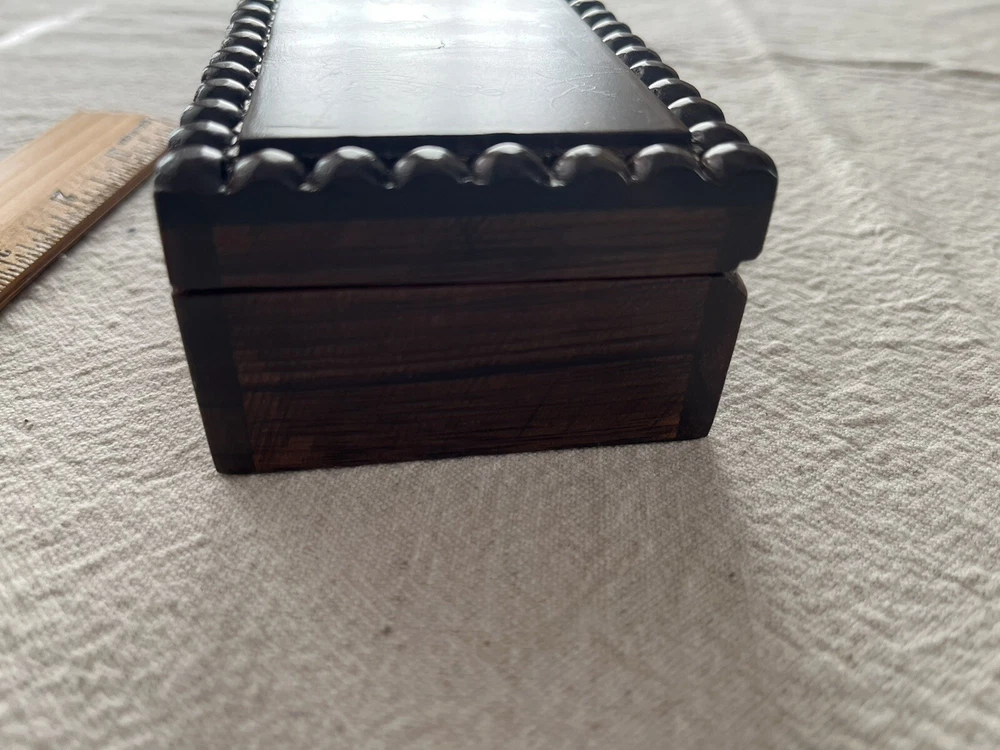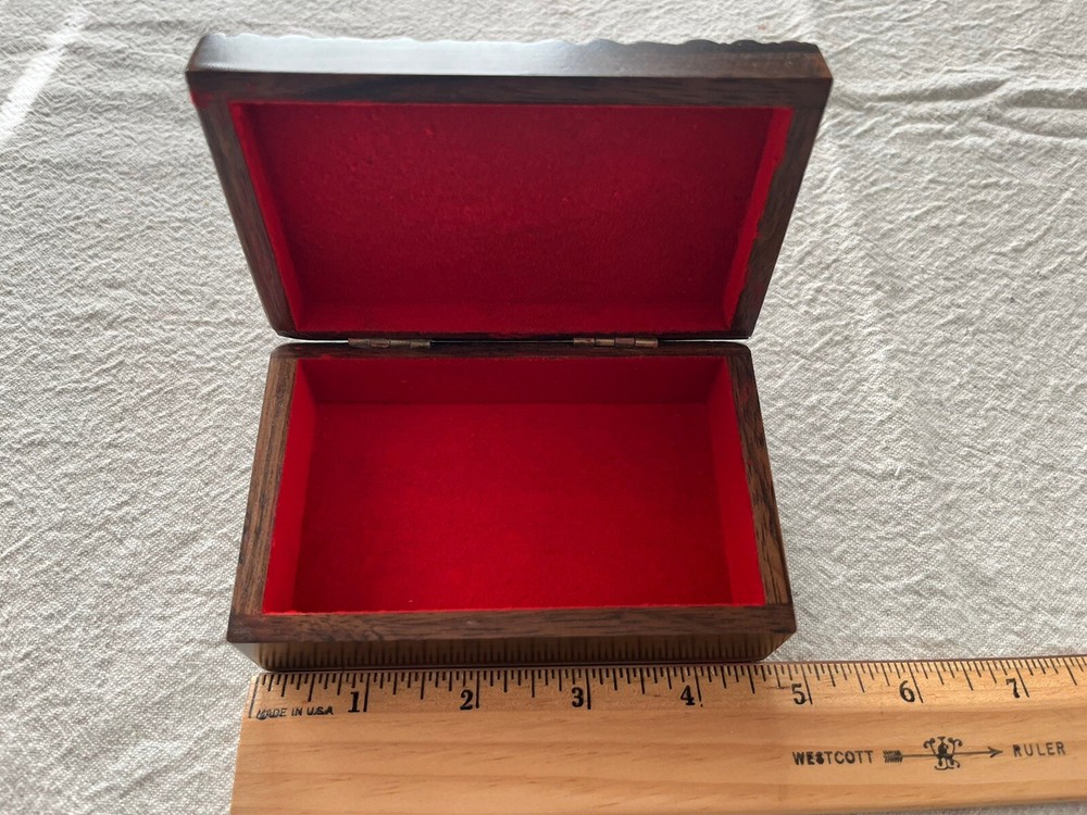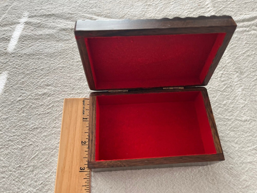 Country/Region of Manufacture:UnknownTheme:ArtCharacter:NoneMaterial:WoodFeatures:BoxedShape:RectangleDepartment:Teens, AdultsFinish:LacqueredSubject:BoxingPattern:No PatternPackaging:BoxSize:SmallCollection:Keepsake BoxesTime Period Manufactured:1970-1979Color:BrownType:Jewelry BoxBrand:UnbrandedStyle:1970s