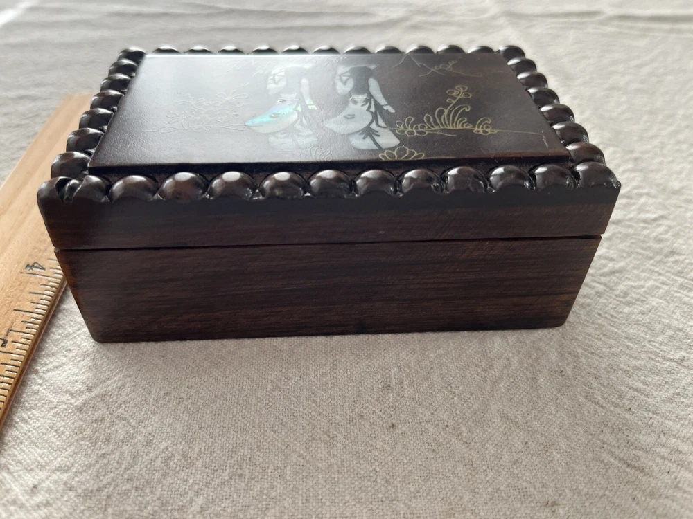 Mother of Pearl Wood Jewelry Box Keepsake Trinket Inlay Case