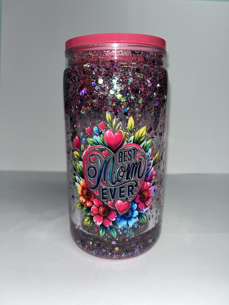 This tumbler is absolutely stunning! The snow globe design with floating glitter is mesmerizing, and the handmade touch makes it extra special. The 16oz size is perfect for daily use, and the included lid and straw are super convenient. It's a beautiful, thoughtful gift that any mom would love—durable, eye-catching, and unique. Highly recommend!