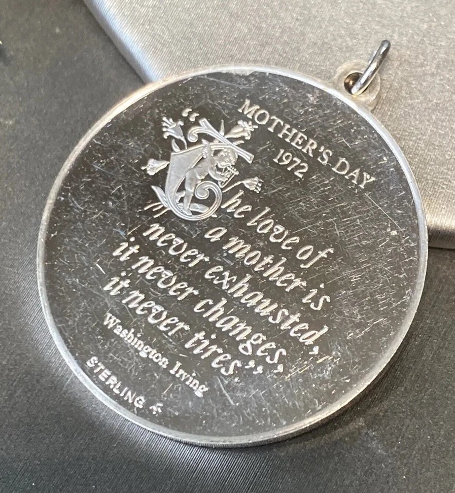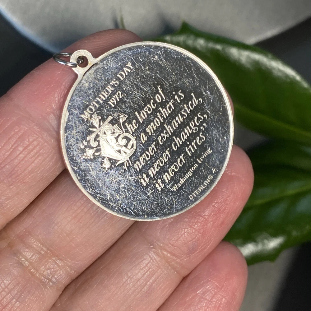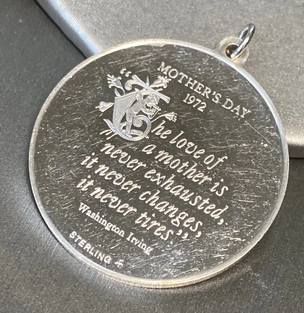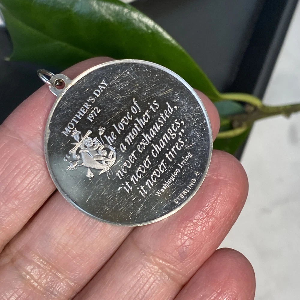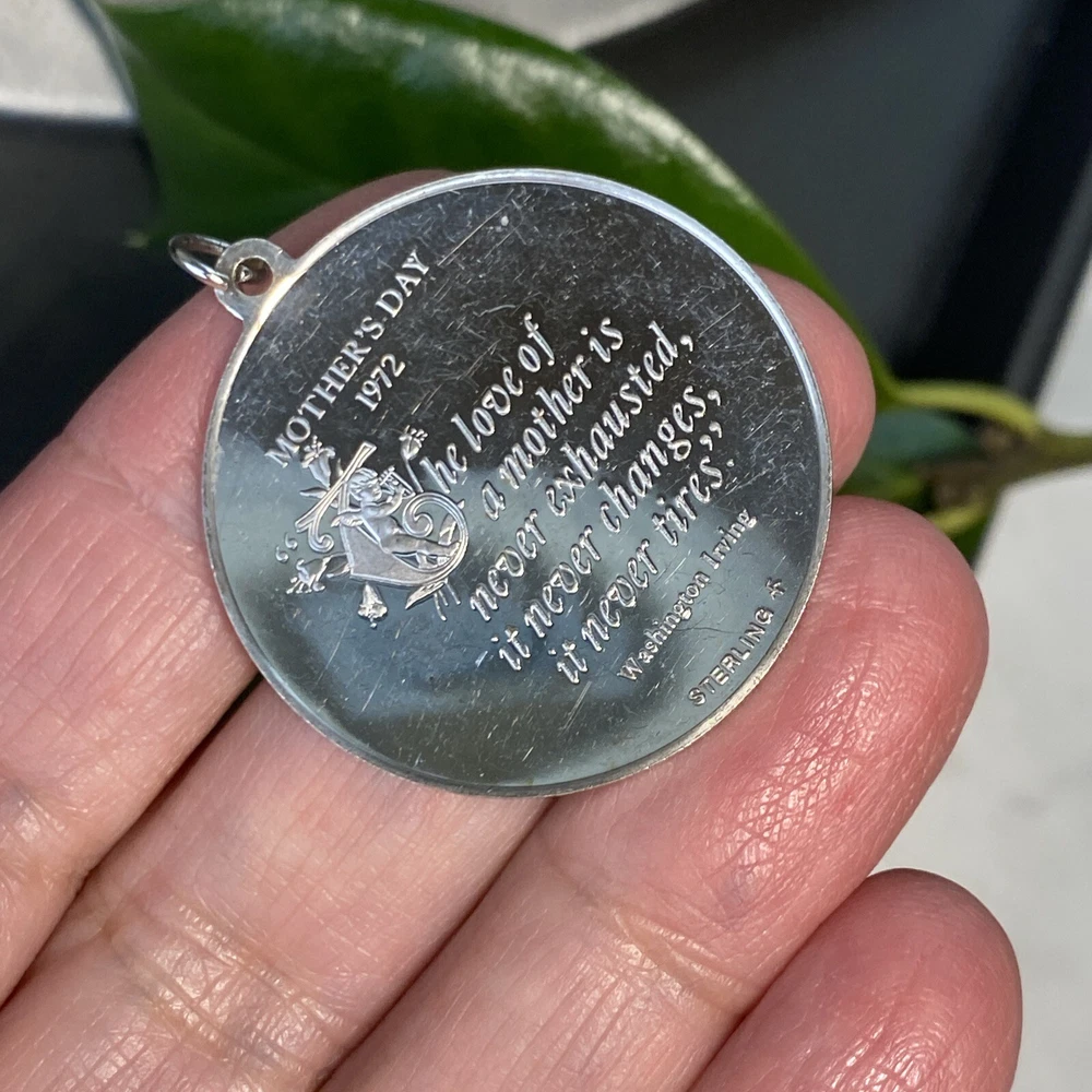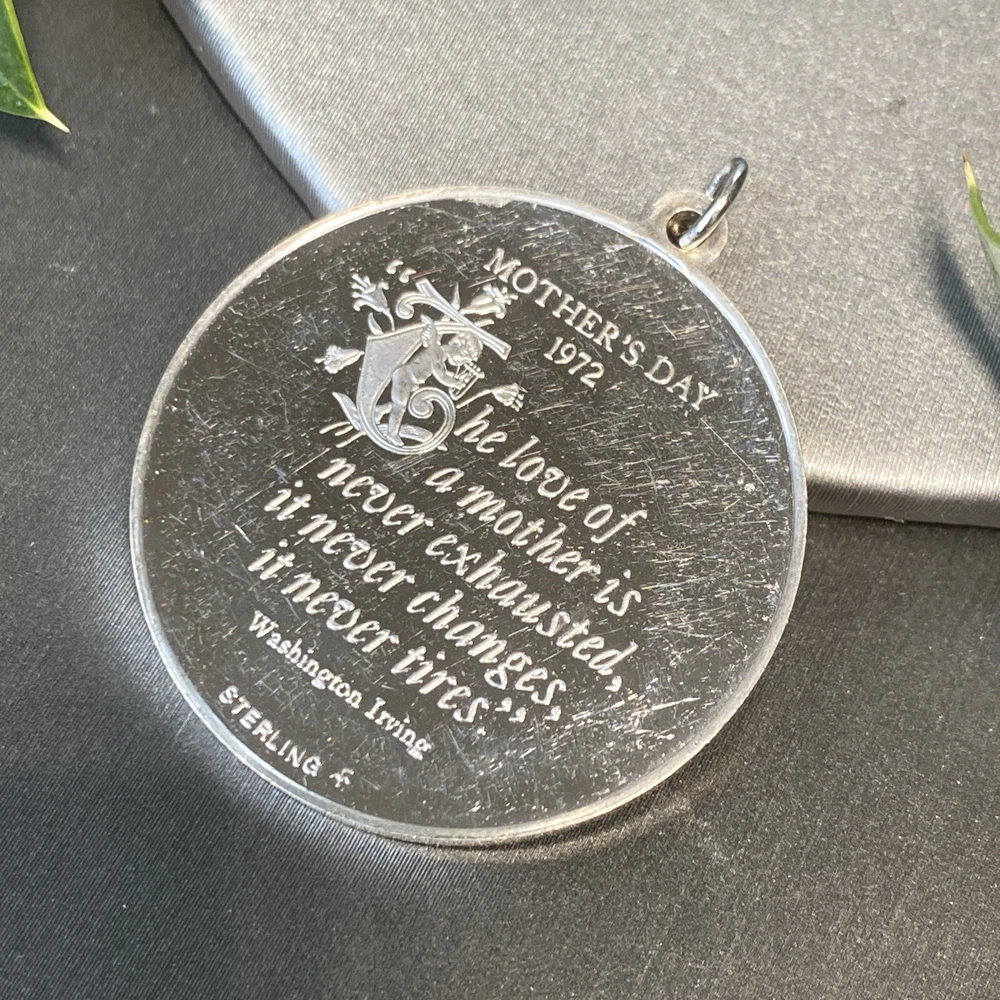 Mother's Day 1972 Vintage 925 Sterling Silver Pendant Measures 32mm in diameter 14.4 grams - heavy-ish