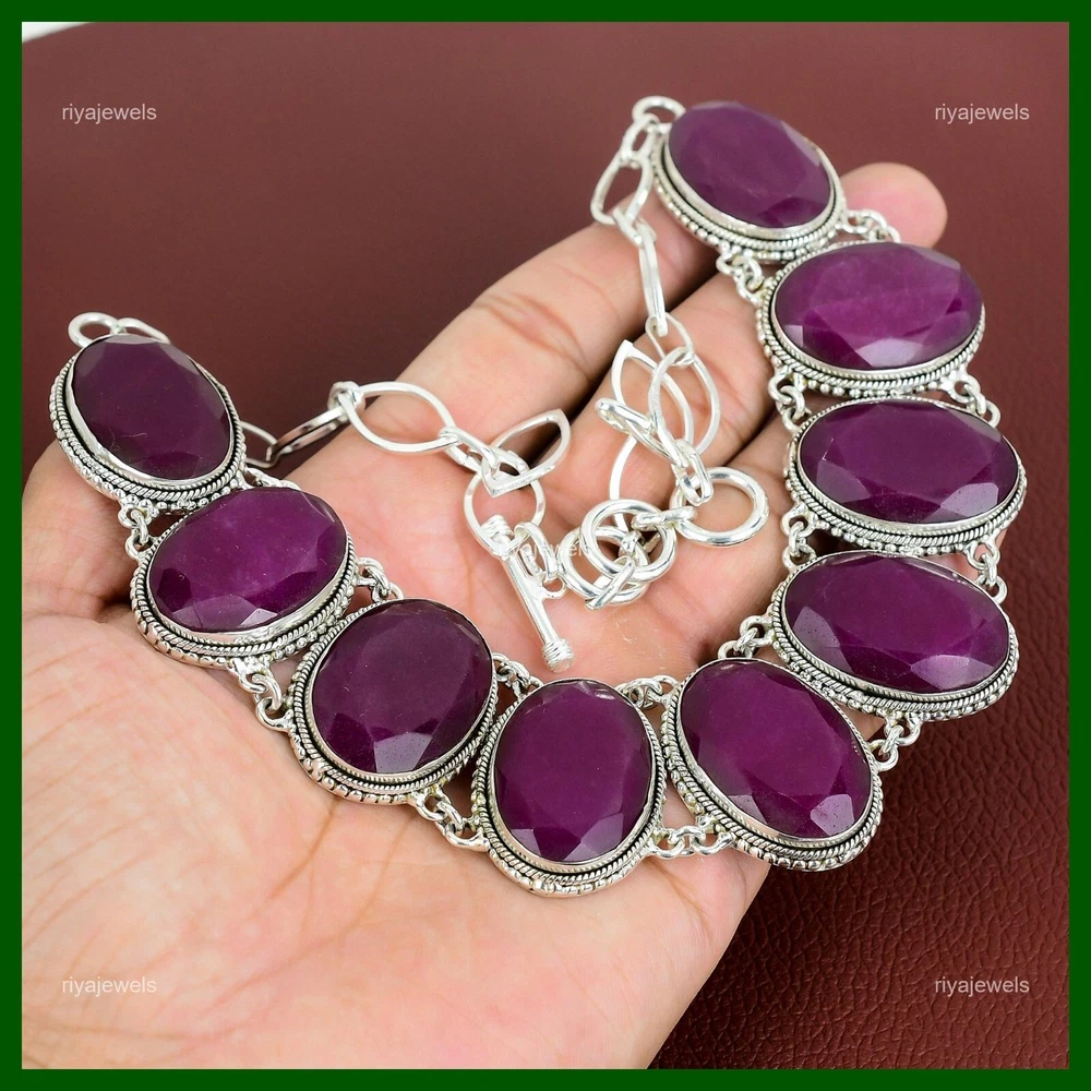 Note : Due to the natural formation of this gemstone. Slight variation in design and color are to be expected. Welcome to Riyajewels Mothers day Sale 925 Silver Kashmir Rubi Gemstone Vintage Chain Necklace Jewelry Handmade Necklace, Sterling Silver Necklace, Kashmir Rubi Necklace, Handcrafted Necklace SKU : PN-1358 Gemstone : Kashmir Rubi Stone Shape : Oval Metal Purity : 925 Sterling Silver Necklace Length : 18 Inches Adjustable : Yes Silver Jewelry is a popular choice for many people due to its unique properties and numerous benefits. Here are some of the key properties and benefits of wearing silver jewelry: Properties: Durability: Silver is a durable metal that can withstand regular wear and tear. Malleability: Silver is highly malleable, which means it can be easily shaped and molded into various designs. Conductivity: Silver is an excellent conductor of heat and electricity. Anti-bacterial: Silver has natural anti-bacterial properties, which can help prevent the growth of harmful bacteria. Benefits: Aesthetic appeal: Silver jewelry is known for its beauty and versatility, and can be worn with a variety of outfits and styles. Hypoallergenic: Silver is generally hypoallergenic, which means it is unlikely to cause an allergic reaction in most people. Healing properties: Some people believe that wearing silver jewelry can help with various physical and emotional conditions, such as arthritis, anxiety, and depression. Spiritual significance: Silver has been used in various cultures for its spiritual and symbolic significance, and wearing silver jewelry can help to connect with these traditions. Investment value: Silver is a precious metal that retains its value over time, and investing in silver jewelry can be a smart financial decision. Overall, silver jewelry offers a unique combination of beauty, durability, and benefits, making it a popular choice for people around the world. For Mother's Day Gift For Father's Day Gift For Promise For Valentine' Day For Halloween Party For Christmas Day Gift For New Year Party For Mom For Her If you can't find the information you need or need some advice for your design? Feel free to contact us. We are fast to reply :) All our work is made by hand with Love and Care in our workshop Thank you so much for visiting and hope you enjoy shopping with us Riyajewels is dedicated to providing customers with high-quality sterling silver jewelry. As a manufacturer of handmade jewelry, we offer an extensive range of silver gemstone jewelry that demonstrates our exceptional craftsmanship. We are skilled in adorning gemstones to complement any style, and we give you the freedom to design your own jewelry collection with dazzling, natural, and genuine gemstones. Our talented craftsmen carefully handcraft each jewelry piece, ensuring that it is unique and made with authentic gemstones.