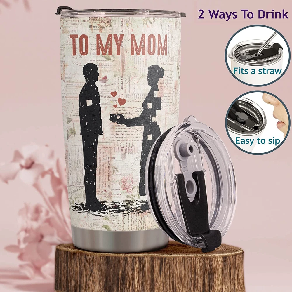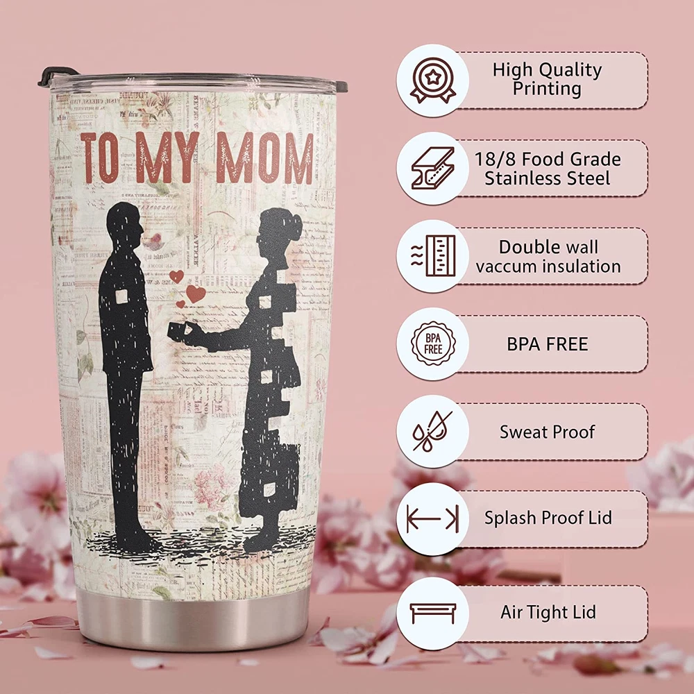 πŸ’• THOUGHFUL TUMBLER πŸ’• For a gift feels extra thoughtful and special because it can only come from you. 🎁 UNIQUE MOTHER'S DAY GIFT FOR MOM 🎁 Our high-quality Tumbler with heart-touching design will certainly be the perfect gift to your Mother/ Mother-in-law/ Stepmother, who always cherishes and supports you in every situation. Presenting this gift to her as a sincere thanks for making your everyday wonderful. In this way, you can express how you're grateful for the love and happiness she brings to your life. πŸŽ… TEMPERATURE RETENTION - Featuring a leakproof cap and made from food-grade stainless steel and BPA-free components, our vacuum insulated flask can keep your beverages hot or cold, at just the right temperature for up to 9 hours, depending on the outside temperature. πŸŽ… PREMIUM MATERIAL - The cup body is made from 18/8 stainless steel, so this tumbler is durable, unbreakable, rust-resistant, and doesn't transfer the flavor of your drinks. The BPA-free clear lid that seals the cup tightly keeps spills under control and allows you to see inside. πŸŽ… FITS IN MOST CUP HOLDERS - Lightweight, compact, fits most car cup holders. Toss your bottle in your bag without worrying about spills, drips, or condensation. Product Description PERFECT MOTHERS DAY GIFTS Surprise her with a high-quality and beautiful tumbler design with meaningful sayings of motherhood. It will also be an extremely unique Mothers Day gifts, birthday gift, Christmas gift, Thanksgiving gifts for mom from daughter, daughter-in-law, son, son-in-law. BEAUTIFUL GIFT PACKAGING Best gifts for mom who have everything and Birthday mom gift from daughter and son. Whether your Stepmother, Mother in law, Grandmother, or an Expecting Mom to be for her baby shower… No matter the occasion, Delight her with the meaningful message and beauty of this unique present VACUUMED INSULATED TUMBLER Adopting double-layer vacuum insulation technology, this insulated stainless steel water bottles can keep your beverage hot for 3 hours and cold for 9 hours, enabling you to warm up a chilly morning with a hot drink or enjoy a cold drink after exercise. Occasion Mother's Day, Valentine's Day, Birthday, Christmas Mother's Day, Valentine's Day, Birthday, Christmas Mother's Day, Valentine's Day, Birthday, Christmas Father's Day, Valentine's Day, Birthday, Christmas Mother's Day, Valentine's Day, Birthday, Christmas Leak-Proof Lid βœ“ βœ“ βœ“ βœ“ βœ“ Capacity 20oz 20oz 20oz 20oz 20oz Material 18/8 Stainless Steel 18/8 Stainless Steel 18/8 Stainless Steel 18/8 Stainless Steel 18/8 Stainless Steel Vacuum Insulated βœ“ βœ“ βœ“ βœ“ βœ“ Sweat Proof βœ“ βœ“ βœ“ βœ“ βœ“
