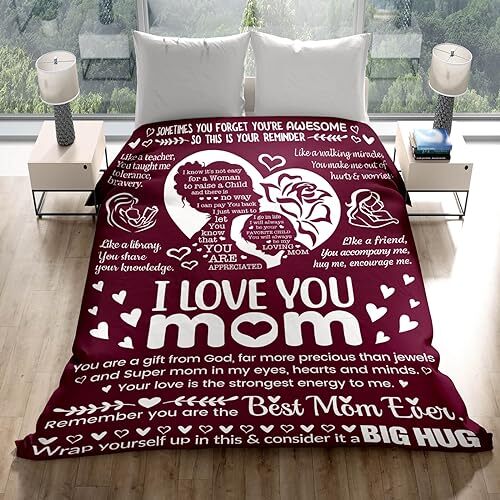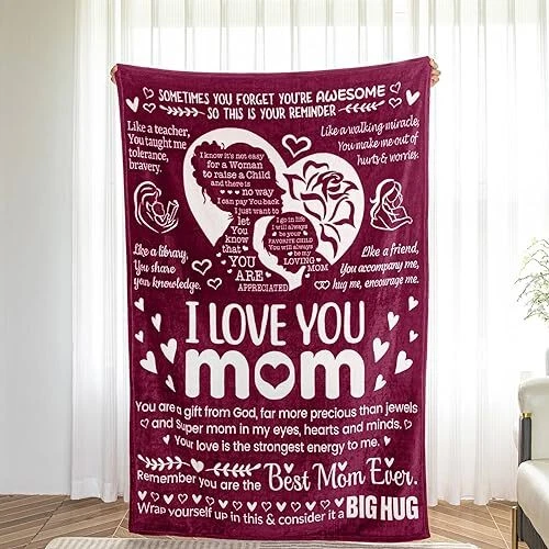 Return Policy Fast Delivery Trusted seller Mothers Day Blanket Gifts for Mom,I Love You,Mom Blanket, Warm Soft Blankets for Dear Mom, Gifts for Mom Birthday50 x 70" (Burgundy) Product Description ?【BLANKET】: Embrace her in luxurious comfort and a beautiful design with meaningful sayings of poetry. This throw blanket is a gift you will be proud to give and one she’ll cherish forever. ?【SURPRISE GIFT】:This one-in-world throw blanket would surely surprise your family, lover and friends. Imagine it, it's so heartwarming to receive such a special and unique present. ?【SUPER SOFT FLANNEL BLANKET】: Our custom blanket made of high quality flannel, which is super soft, lightweight, anti-wrinkle, and non-shedding. Use the latest printing technology and environmentally friendly printing ink materials to make the Image clearly displayed on the blanket. Not fade and without any peculiar smell. ?【Functional and Decor】: These blankets are great for snuggling while watching TV, relaxing on the sofa. Cover it in couch, sofa, sectional, or bed, and add a new style to your life. ?【GOOD SERVICES】: If you have any questions about our services, please contact us. We will give you a answer within 24 Hours. If t is any problem with the blanket, please contact us. Shipping Returns Payment Shipping Shipping is FREE to all addresses other than APO/PO boxes in the lower 48 states. All our stock ships from US-based warehouses. Shipped via USPS or UPS (depending on location and package weight) Unless stated otherwise, all orders will ship within 24-72 hours of your payment being processed. Check our feedback to see the great reviews of FAST shipping we offer. Returns Seller does not accept returns Payment We currently accept payment via eBay managed payments only. Once payment is cleared, we will dispatch your shipment within 1-3 business days. Please refer to the "Shipping" tab for more information regarding shipping speed to your destination.