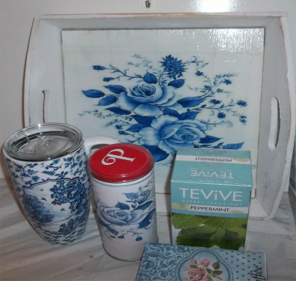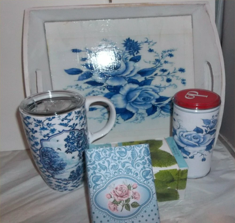 Mothers Day Blue Rose Ceramic Travel Mug Decorative Serving Tray CHIC Tray Gift