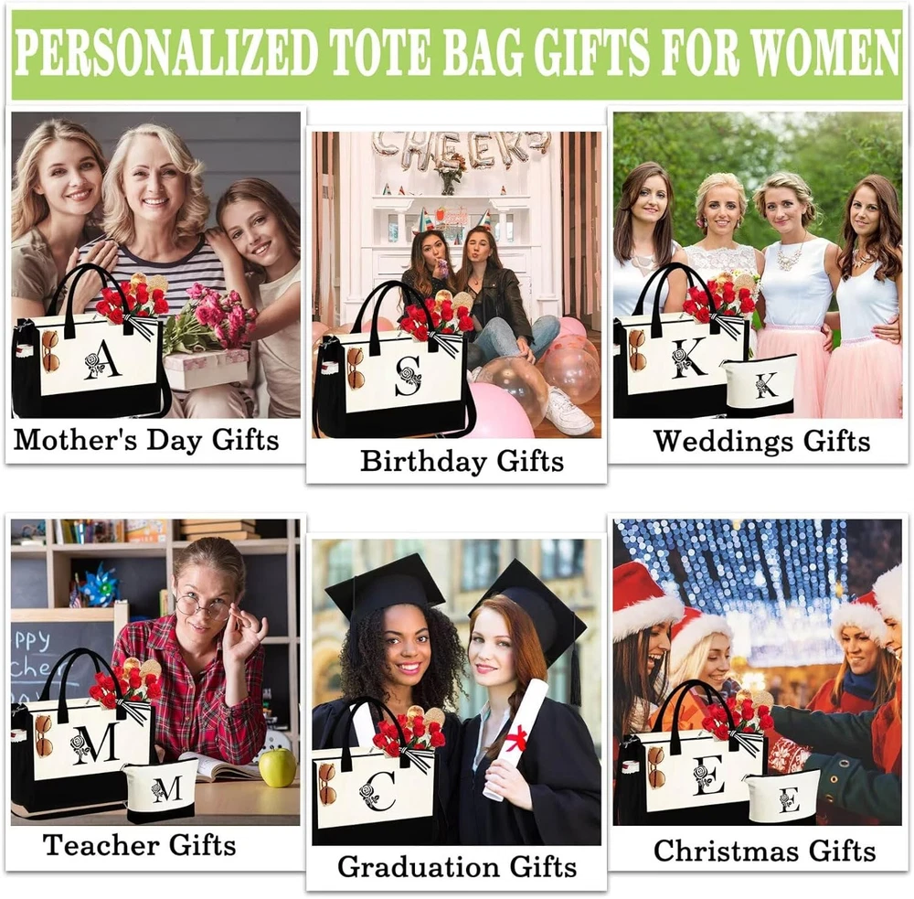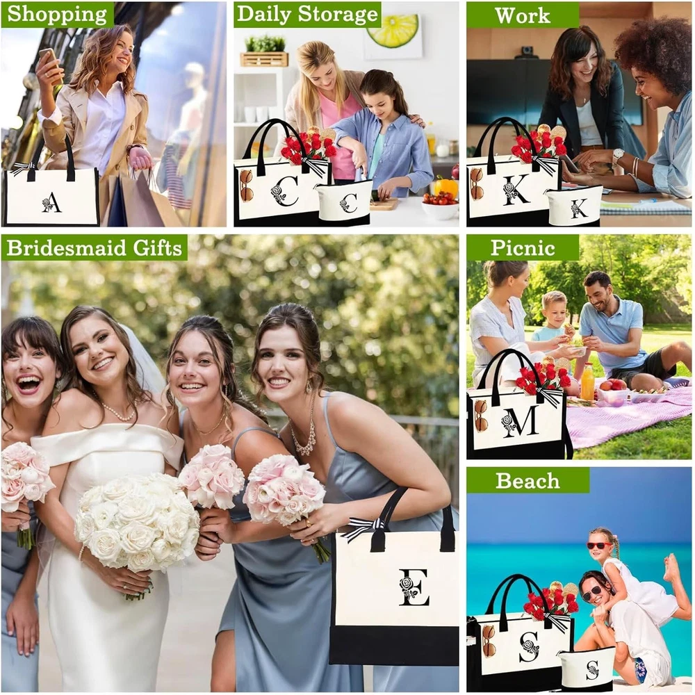 Absolutely love this personalized set! The canvas tote is roomy and sturdy, perfect for beach trips or shopping, and the matching makeup bag keeps everything organized. Great quality and such a thoughtful gift for any special woman in your life.