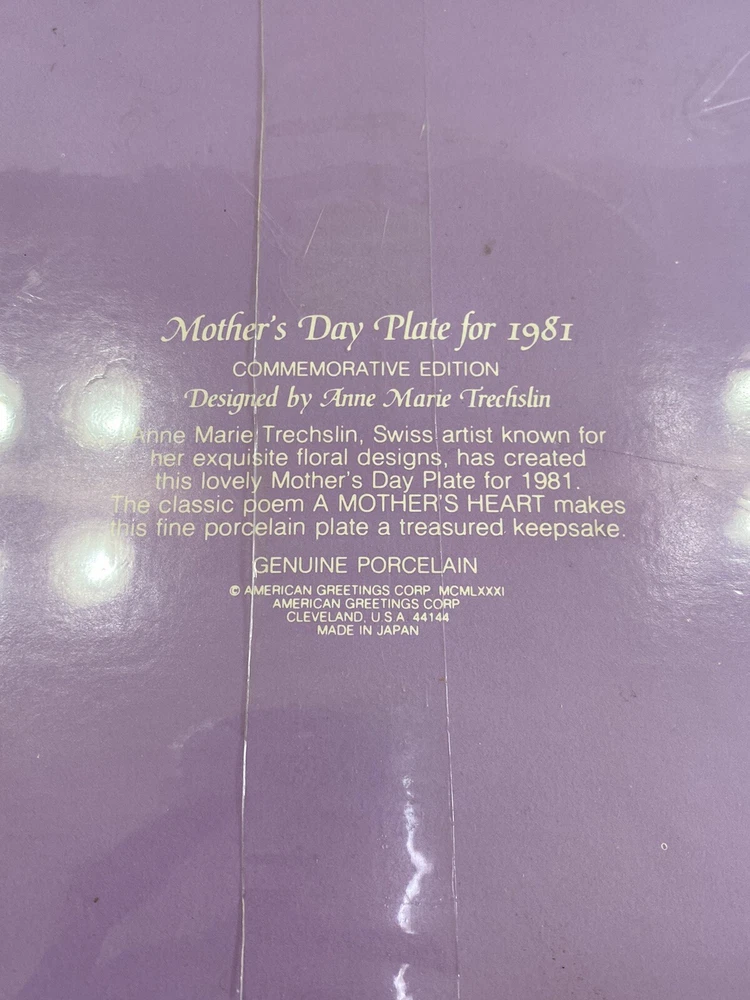 Mothers Day China Plate 1981 American Greetings Signed Anne Marie Trechslin New