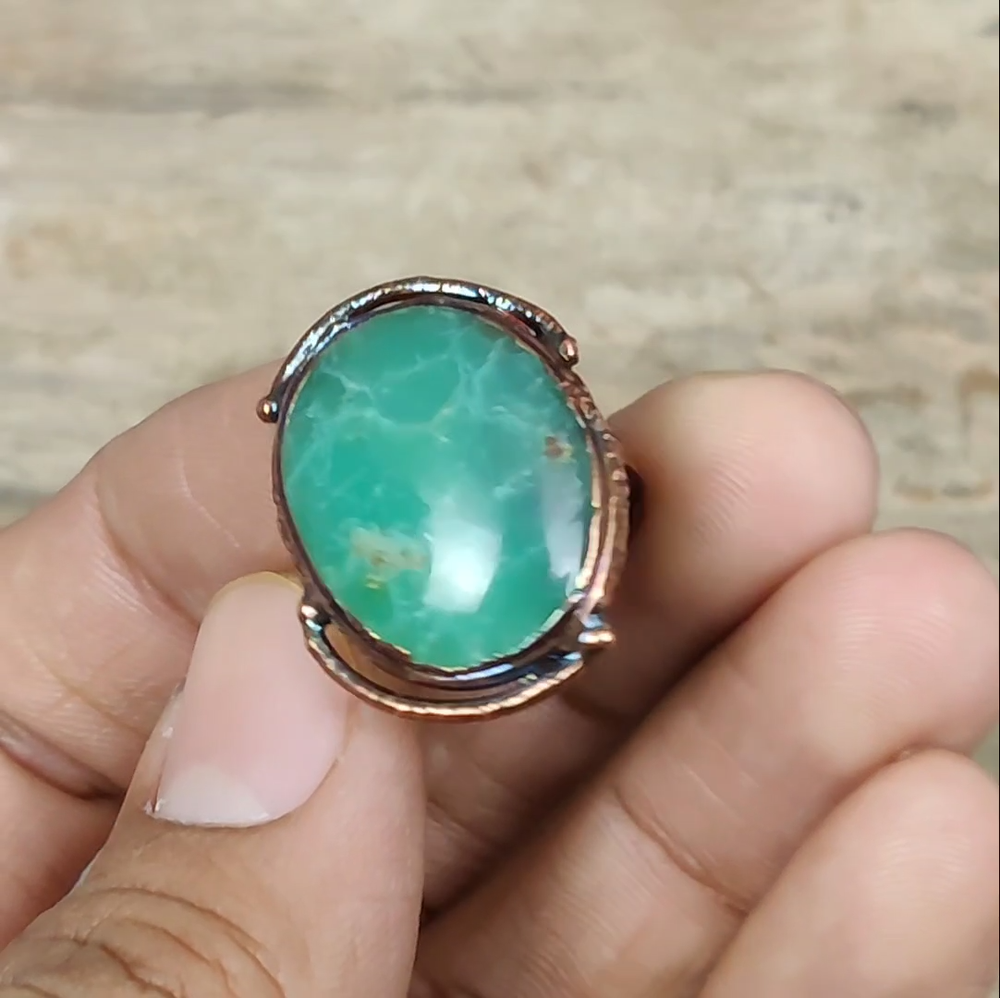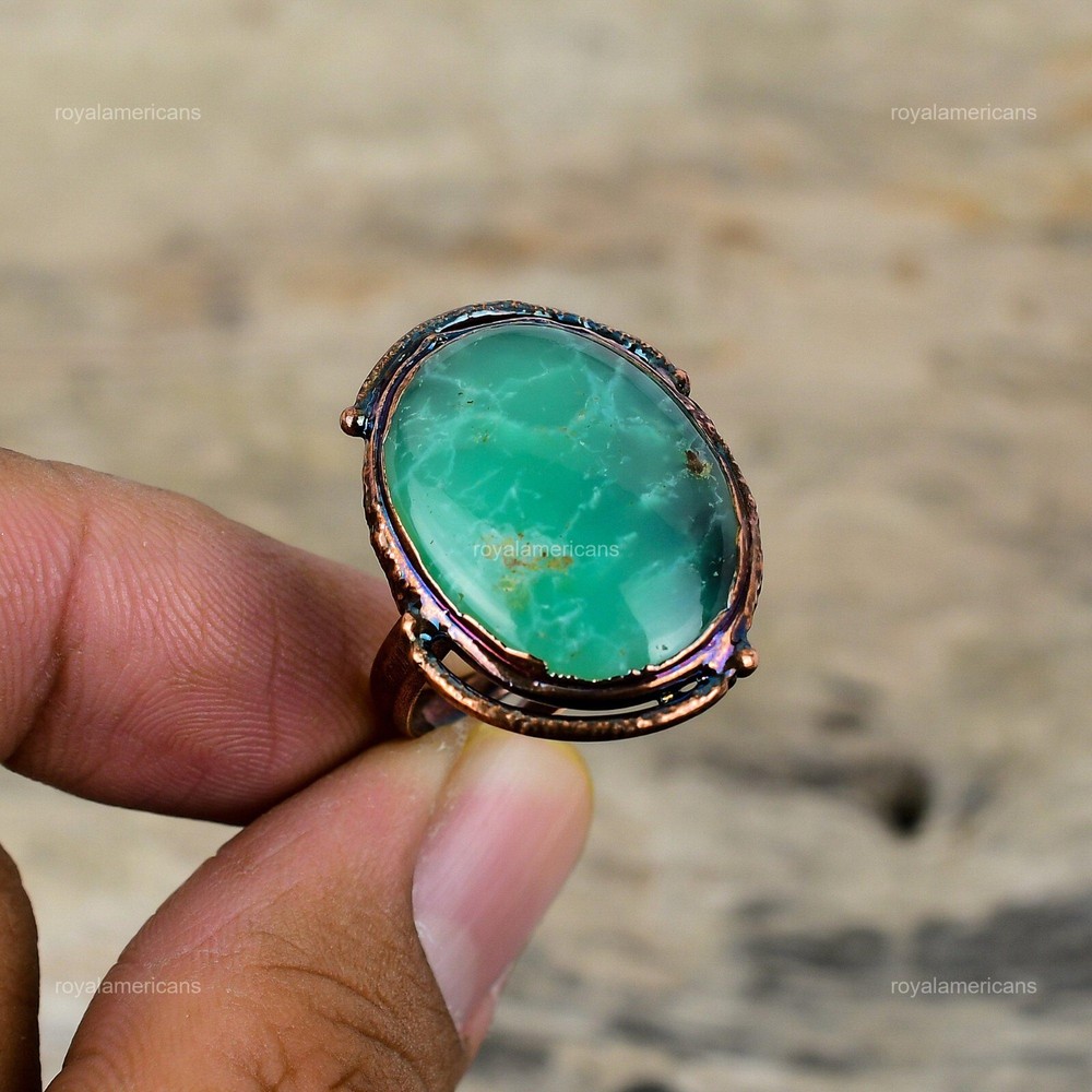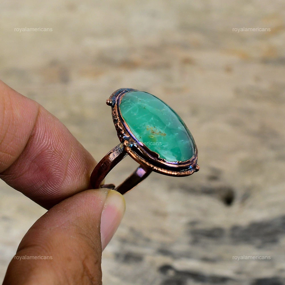 Mothers Day Copper Chrysoprase Electroformed Solitaire Ring Gift