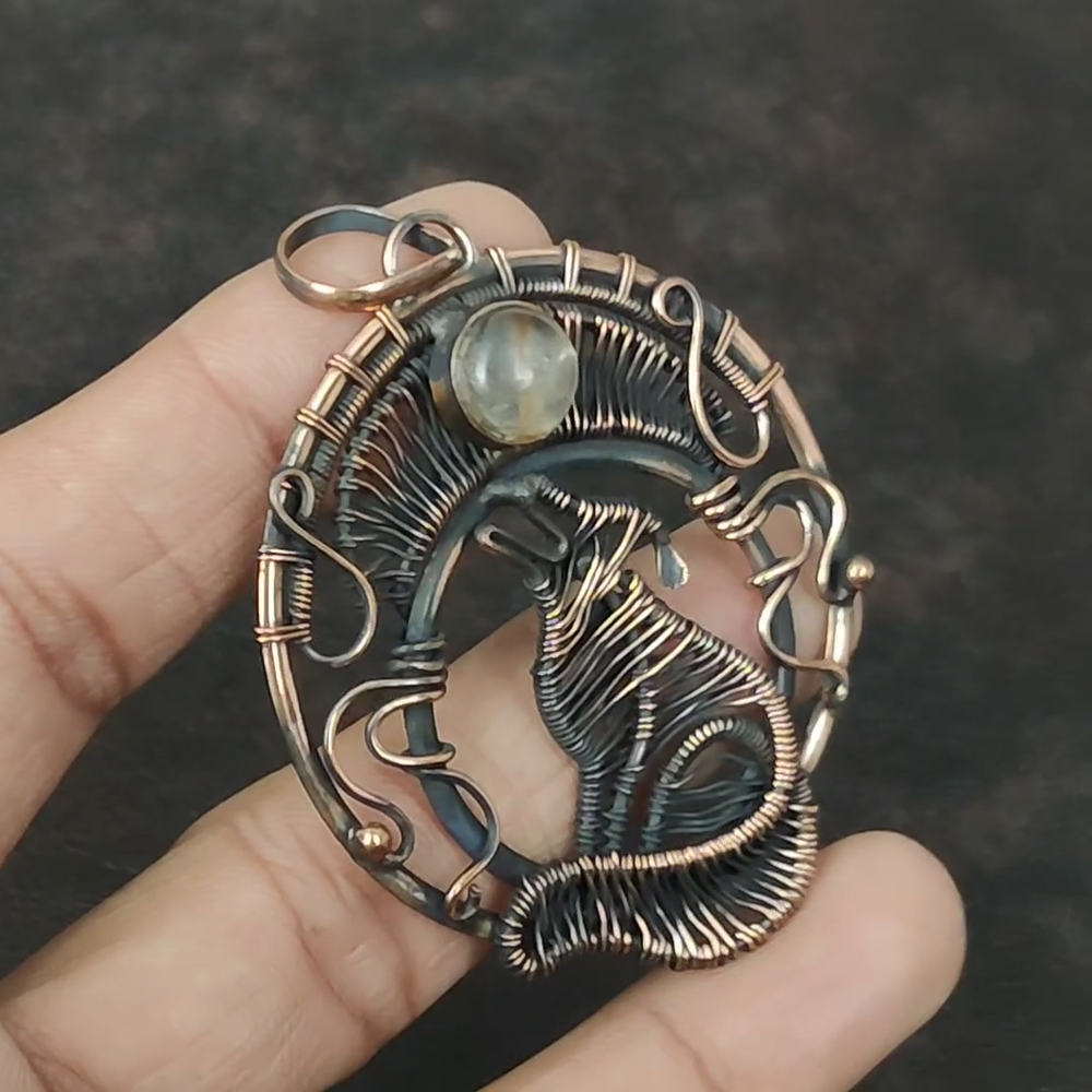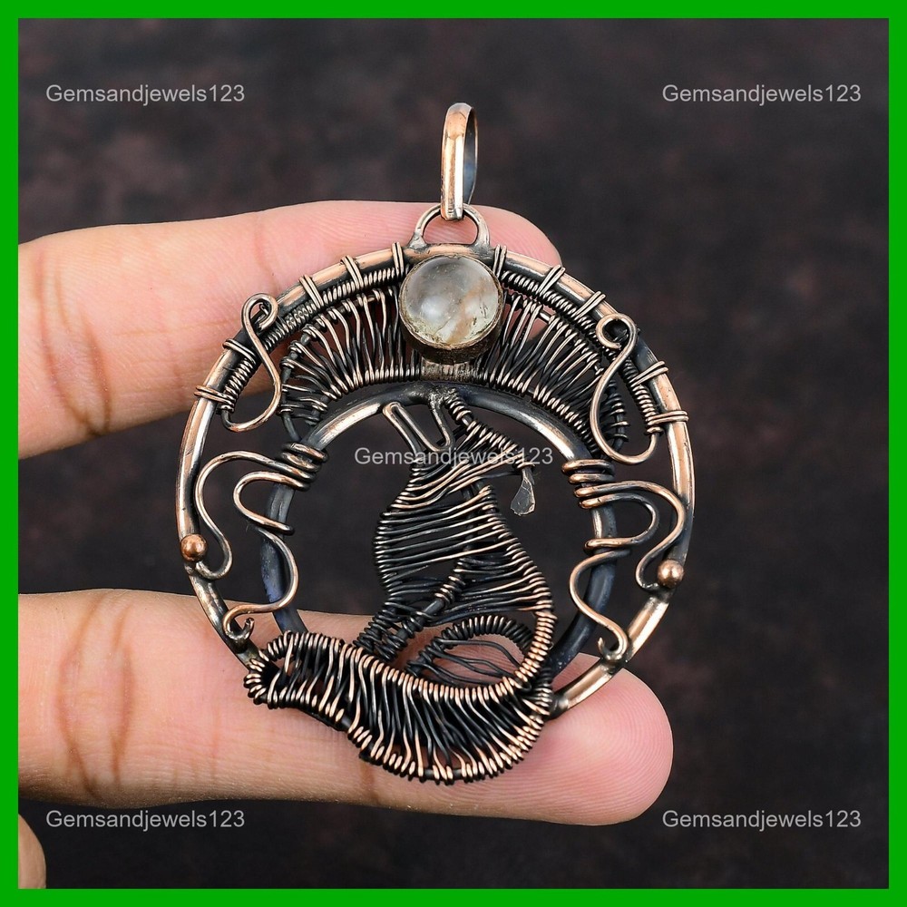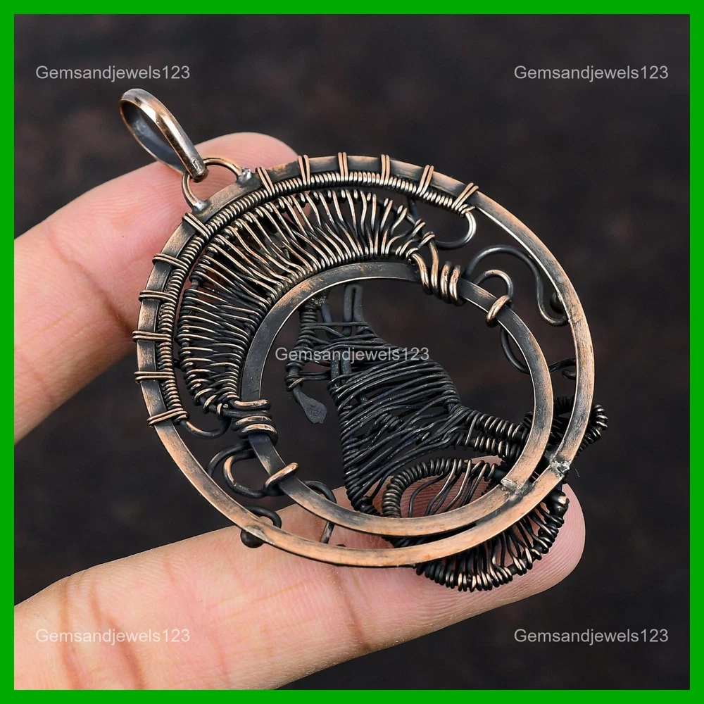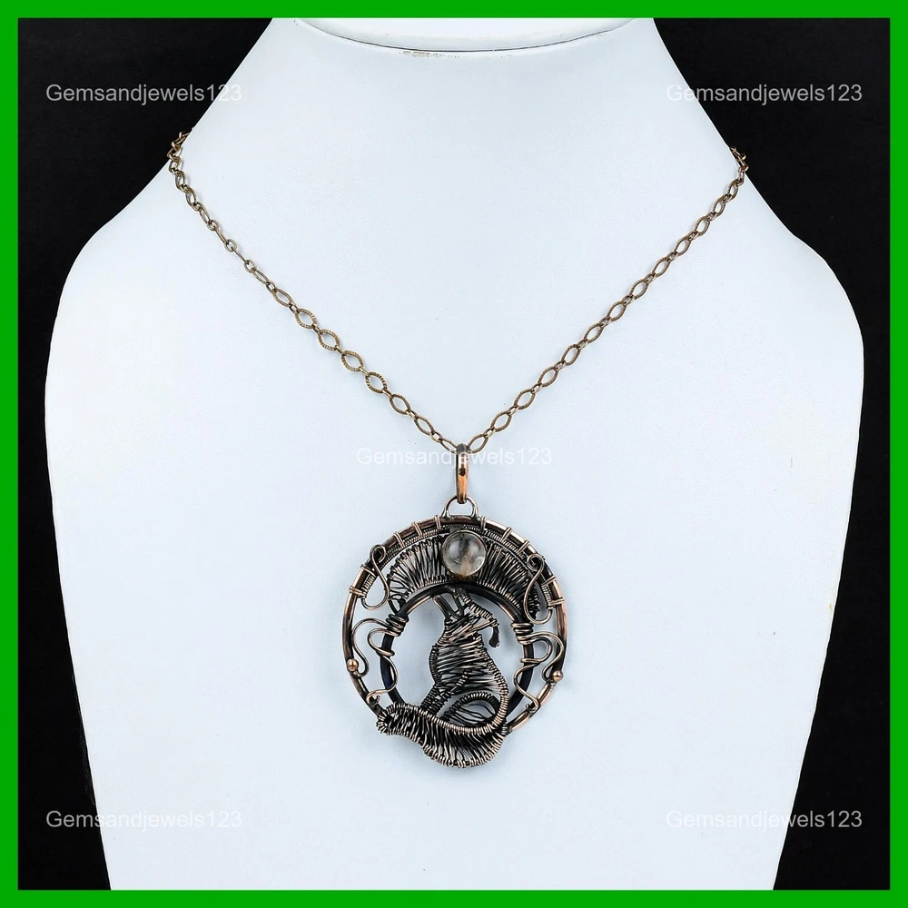 Note : Due to the natural formation of this gemstone. Slight Variation in design and color are to be expected. Welcome to gemsandjewels123 Mothers day Deal Copper Golden Rutile Gemstone Wire Wrapped Dog Pendant Jewelry Handmade Pendant, Wire Wrapped Pendant, Wire Wrapped Jewelry, Copper Pendant, Copper Wire Pendant, Wrapped Jewelry, Wire Wrap Pendant, Wire Wrap Jewelry SKU : VFWP-3586 Gemstone : Golden Rutile Stone Shape : Round Metal Purity : Unknown Copper Length : 75 Millimeters Width : 54 Millimeters Copper has been used for jewelry making for thousands of years, dating back to ancient civilizations such as the Egyptians, Romans, and Aztecs. Copper was valued for its beauty, versatility, and durability, and was often used to make everything from jewelry and coins to cookware and tools. In addition to its historical significance, copper jewelry also offers several benefits. Copper is a natural conductor of heat and electricity, which makes it ideal for energy healing and therapeutic purposes. Wearing copper jewelry is believed to have various health benefits, such as improving circulation, reducing inflammation, and boosting the immune system. Some people also believe that copper jewelry has the ability to balance energy and improve mood. For Mother's Day Gift For Father's Day Gift For Promise For Valentine's Day For Halloween Party For Christmas Day Gift For New Year Party For Mom For Her If you can't find the information you need or need some advice for your design? Feel free to contact us. We are fast to reply :) All our work is made by hand with Love and Care in our workshop Thank you so much for visiting and hope you enjoy shopping with us gemsandjewels123 is committed to delivering the best quality sterling silver jewelry to customers. As a handmade jewelry manufacturer, we offer an extensive selection of copper gemstone jewelry that showcases the brilliance of our craftsmanship. We are an experienced handmade jewelry supplier with expertise in embellishing gemstones to suit every style. We offer you the liberty to create your jewelry ensemble with sparkling, earthy, and pure gemstones. Our Talented artisans masterfully handcraft each piece of jewelry you see here. Our pieces are made with genuine gemstones. The one-of-a-kind piece you see here is the same exact piece you will receive.