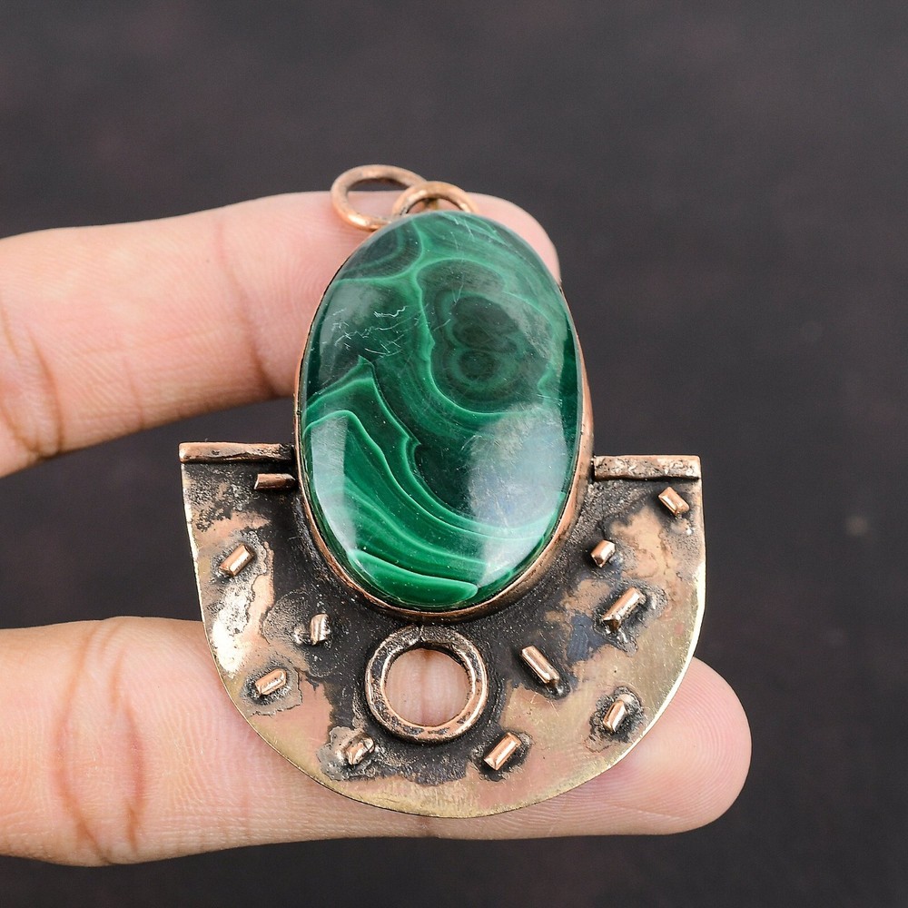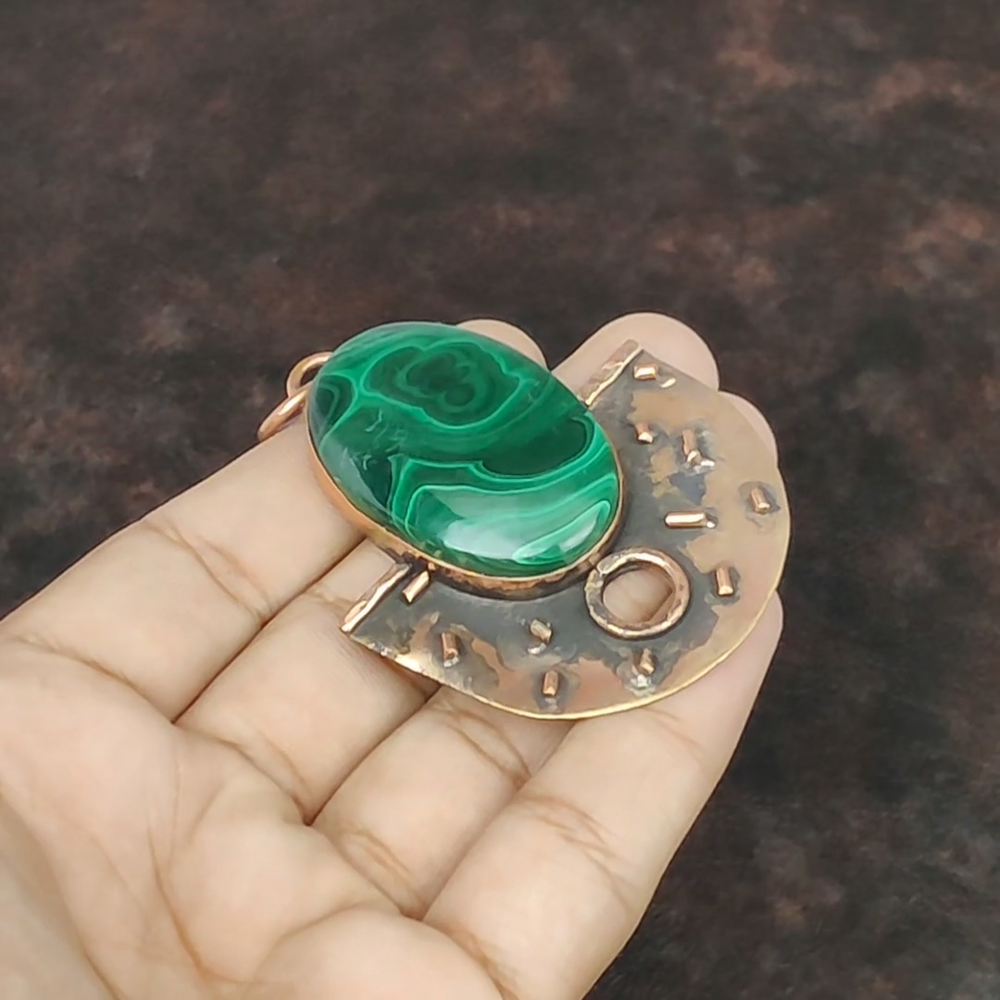 Note : Due to the natural formation of this gemstone. Slight variation in design and color are to be expected. Welcome to Silver Creation Mothers day Deal Copper Natural Malachite Elegant Wife Anniversary Boho Pendant Handmade Pendant, Wire Wrapped Pendant, Wire Wrapped Jewelry, Copper Pendant, Copper Wire Pendant, Wrapped Jewelry, Wire Wrap Pendant, Wire Wrap Jewelry SKU : WP-113 Stone Shape : Oval Metal Purity : Unknown Copper Length : 70 Millimeters Width : 50 Millimeters Copper has been used for jewelry making for thousands of years, dating back to ancient civilizations such as the Egyptians, Romans, and Aztecs. Copper was valued for its beauty, versatility, and durability, and was often used to make everything from jewelry and coins to cookware and tools. In addition to its historical significance, copper jewelry also offers several benefits. Copper is a natural conductor of heat and electricity, which makes it ideal for energy healing and therapeutic purposes. Wearing copper jewelry is believed to have various health benefits, such as improving circulation, reducing inflammation, and boosting the immune system. Some people also believe that copper jewelry has the ability to balance energy and improve mood. For Mother's Day Gift For Father's Day Gift For Promise For Valentine' Day For Halloween Party For Christmas Day Gift For New Year Party For Mom For Her If you can't find the information you need or need some advice for your design? Feel free to contact us. We are fast to reply :) All our work is made by hand with Love and Care in our workshop Thank you so much for visiting and hope you enjoy shopping with us Silvercreations is committed to delivering the best quality sterling silver jewelry to customers. As a handmade jewelry manufacturer, we offer an extensive selection of copper gemstone jewelry that showcases the brilliance of our craftsmanship. We are an experienced handmade jewelry supplier with expertise in embellishing gemstones to suit every style. We offer you the liberty to create your jewelry ensemble with sparkling, earthy, and pure gemstones. Our Talented artisans masterfully handcraft each piece of jewelry you see here. Our pieces are made with genuine gemstones.