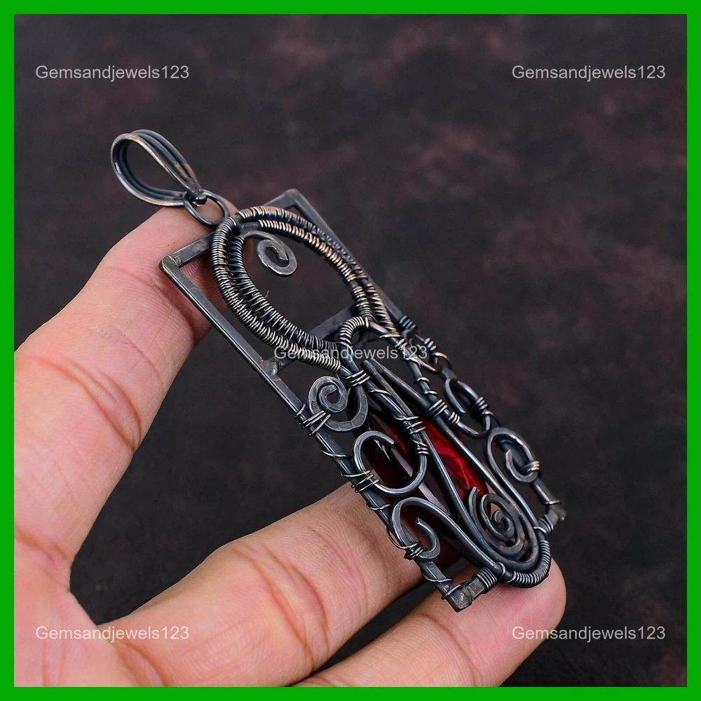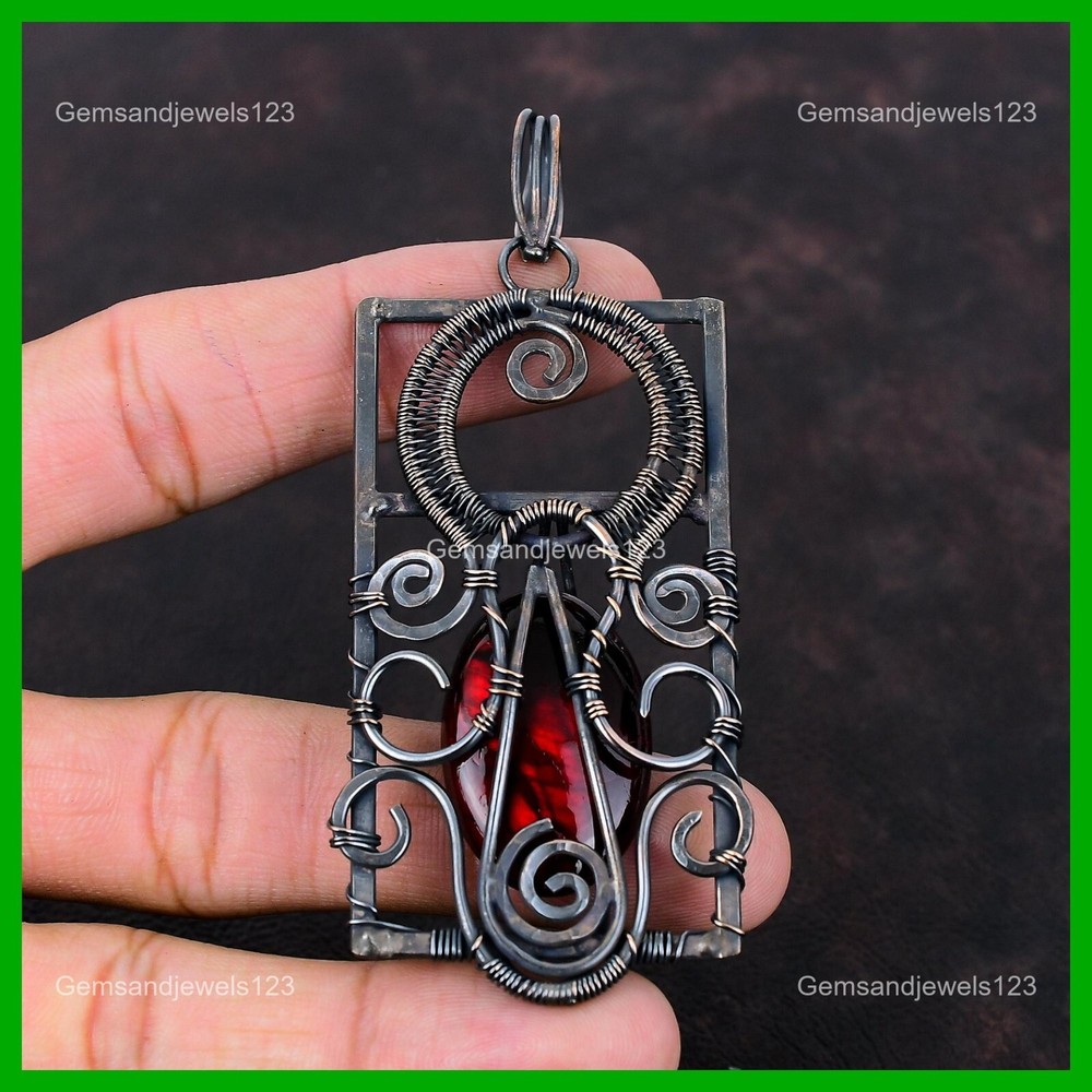 Note : Due to the natural formation of this gemstone. Slight Variation in design and color are to be expected. Welcome to gemsandjewels123 Mothers day Deal Copper Oval Red Fire Labradorite Gemstone Wire Wrapped Pendant Handmade Pendant, Wire Wrapped Pendant, Wire Wrapped Jewelry, Copper Pendant, Copper Wire Pendant, Wrapped Jewelry, Wire Wrap Pendant, Wire Wrap Jewelry SKU : VFWP-4053 Gemstone : Red Fire Labradorite Stone Shape : Oval Metal Purity : Unknown Copper Length : 94 Millimeters Width : 41 Millimeters Copper has been used for jewelry making for thousands of years, dating back to ancient civilizations such as the Egyptians, Romans, and Aztecs. Copper was valued for its beauty, versatility, and durability, and was often used to make everything from jewelry and coins to cookware and tools. In addition to its historical significance, copper jewelry also offers several benefits. Copper is a natural conductor of heat and electricity, which makes it ideal for energy healing and therapeutic purposes. Wearing copper jewelry is believed to have various health benefits, such as improving circulation, reducing inflammation, and boosting the immune system. Some people also believe that copper jewelry has the ability to balance energy and improve mood. For Mother's Day Gift For Father's Day Gift For Promise For Valentine's Day For Halloween Party For Christmas Day Gift For New Year Party For Mom For Her If you can't find the information you need or need some advice for your design? Feel free to contact us. We are fast to reply :) All our work is made by hand with Love and Care in our workshop Thank you so much for visiting and hope you enjoy shopping with us gemsandjewels123 is committed to delivering the best quality sterling silver jewelry to customers. As a handmade jewelry manufacturer, we offer an extensive selection of copper gemstone jewelry that showcases the brilliance of our craftsmanship. We are an experienced handmade jewelry supplier with expertise in embellishing gemstones to suit every style. We offer you the liberty to create your jewelry ensemble with sparkling, earthy, and pure gemstones. Our Talented artisans masterfully handcraft each piece of jewelry you see here. Our pieces are made with genuine gemstones. The one-of-a-kind piece you see here is the same exact piece you will receive.