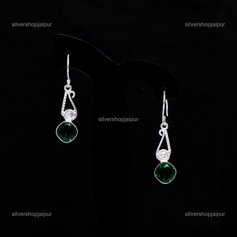 Mother's Day Emerald Gemstone 925 Sterling Silver Dangling Earrings
