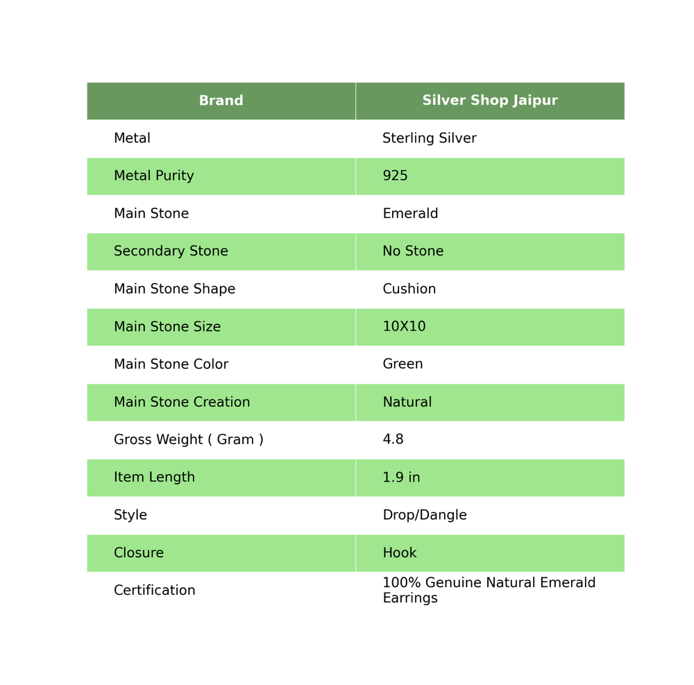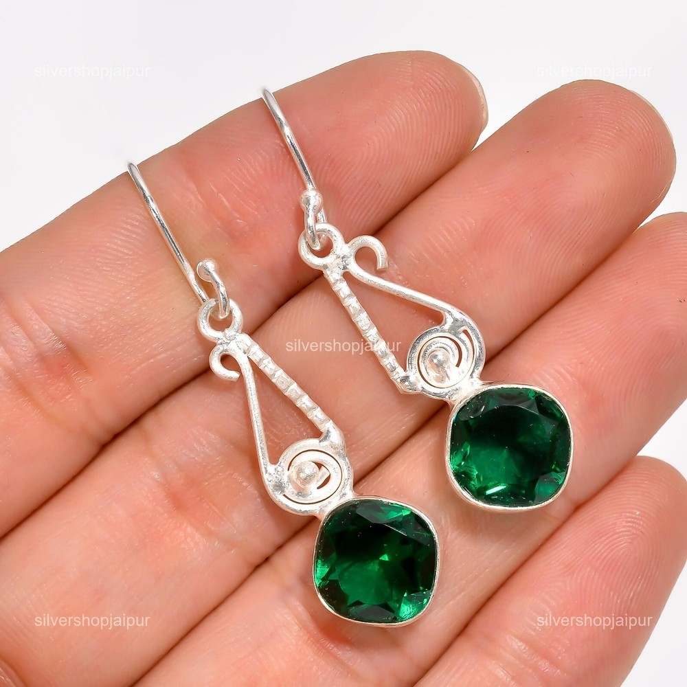With a very minimalist design yet attractive approach, this Earrings would be the best choice to gift someone you love. It features luscious 925 Sterling Silver with adornment of glitzy Emerald. Don't wait to get this superb jewelry piece. Welcome to SILVERSHOPJAIPUR Mothers day Deal Emerald Gemstone 925 Sterling Silver Dangling Earrings Jewelry Description :- SKU:- SSSE-178 Metal:- Sterling Silver Metal Purity:- 925 Gemstone:- Emerald Gemstone Color:- Green Gemstone Shape :- Cushion Gemstone Creation :- Natural Stone Setting :- Bezel Earring Length:- 1.9 Inches ♥ CUSTOMIZATION ♥ Customize your ring with your choice of birthstone or gemstone, and choose from heart or star designs, with or without additional embellishments. ♥ SAFE AND HYPOALLERGENIC ♥ Our sterling silver rings are nickel-free, lead-free, and hypoallergenic, ensuring they are safe and gentle on your skin. Handcrafted by SILVERSHOPJAIPUR. ♥ PERFECT GIFT ♥ These handmade, beautifully textured or hammered wide statement spinner rings are perfect for any occasion. They make thoughtful gifts for birthdays, weddings, anniversaries, or engagements. Your mom will adore this ring on Mother’s Day. ♥ QUALITY STERLING SILVER ♥ Made from solid 925 sterling silver with a 925 stamp, these rings are durable and perfect for everyday wear. ♥ VERSATILE STYLE ♥ These rings complement any outfit, making them a versatile addition to your jewelry collection. Ideal for any occasion and perfect as holiday stocking stuffers. ♥ EYE-CATCHING DESIGN ♥ Designed to ensure you stand out effortlessly, these rings combine sleek, modern, classic, and elegant styles. Each ring is carefully packed in a beautiful jewelry box, making it a wonderful gift for your mother, girlfriend, fiancée, wife, valentine, family, or friends for Mother’s Day, weddings, anniversaries, engagements, or Valentine’s Day. --------------------------------Image Policy----------------------------- All photos are taken in natural light. The product shown in the pictures is the actual product you will receive. --------------------------------Delivery Policy-------------------------- Standard shipping typically takes 15-25 days, depending on your location. Expedited shipping is available for an additional fee. --------------------------------Product Policy--------------------------- You will receive the actual product shown in the pictures. All products are handmade. ---------------------------------Order Policy------------------------------ We accept orders worldwide, including custom and bulk orders. If you have any questions about our products, please feel free to contact us. After receiving your product, please leave a review. ⋆⋆✦✧✦⋆⋆⋆⋆✦✧✦⋆⋆⋆⋆✦✧✦⋆⋆⋆⋆✦✧✦⋆⋆⋆⋆✦✧✦⋆⋆⋆⋆✦✧✦⋆⋆⋆⋆✦✧✦⋆⋆ "Explore a realm of exquisite and enchanting handcrafted gemstone jewelry at our boutique." ♥ Thank you for visiting us ♥