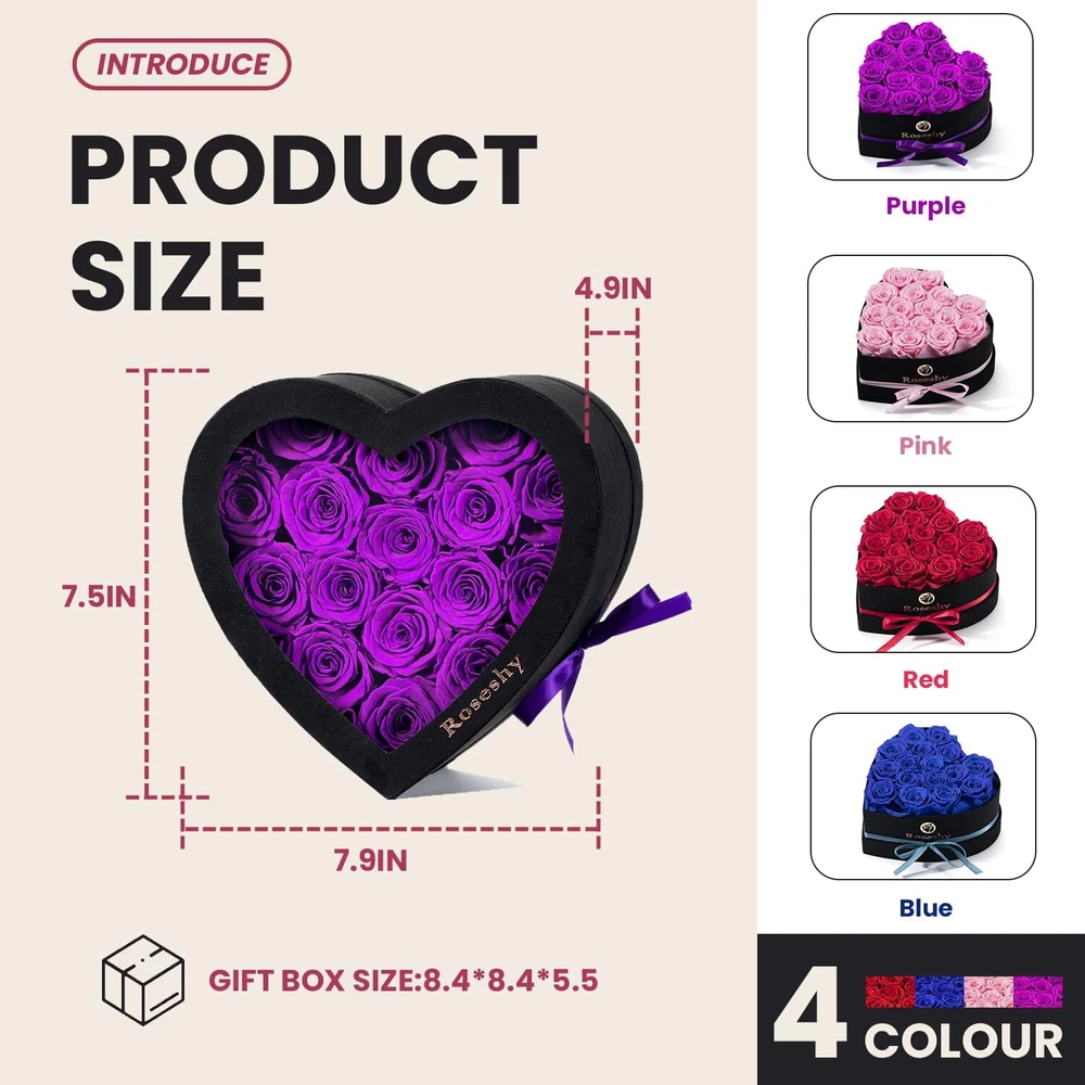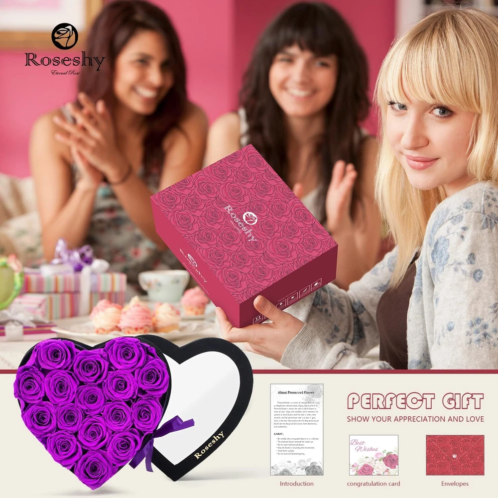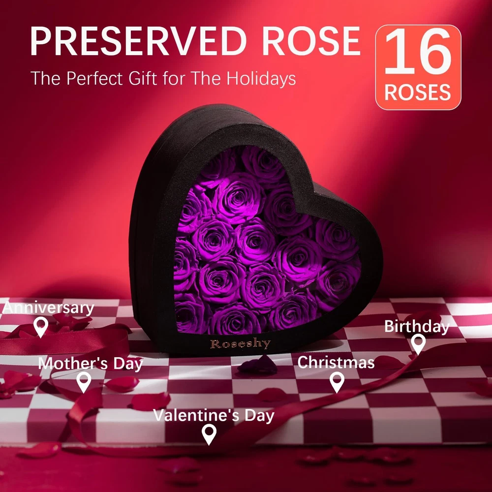 Mothers Day Flowers Roses Gifts for Mom,16pcs Forever Preserved Roses in Heart Shape Gift Box,Mothers Day Delivery Prime Gifts-Roses Gifts for Her Women,Mom Wife Eternal Preserved Roses: These preserved roses can be kept for 1-3 years, expressing everlasting love and affection. Heart-Shaped Gift Box: The set includes 16pcs of forever preserved roses beautifully arranged in a heart-shaped gift box, perfect for romantic occasions. Thoughtful Gifts: Ideal for girlfriends, wives, moms, or any special woman in your life, these roses make heartfelt gifts that convey love and appreciation. Versatile Occasion: Whether it's Christmas, Valentine's Day, Mother's Day, anniversary, or a birthday, these preserved roses are a fitting gift choice. Lasting Beauty: Unlike fresh flowers that wither quickly, this preserved rose set stays vibrant and attractive, serving as a lasting symbol of your love and care.