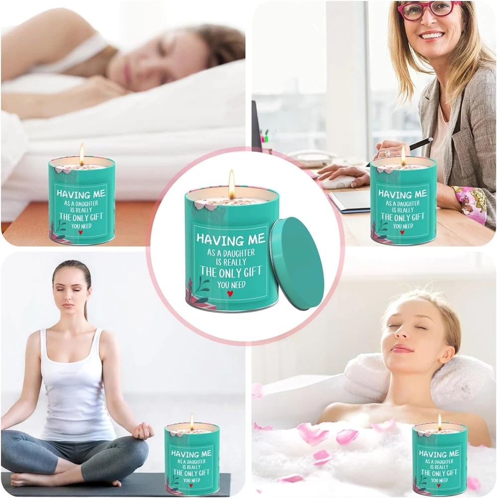 【100% Natural Soy Wax】- Candle is made of natural soy wax and premium gardenia essential oils,the wax core is made of 100% lead-free cotton and will not produce black smoke when ignited. Soy wax candles are free from paraffin and and burnt without fumes. 💕【Funny Gifts Ideas】- Scented candles 9 oz, each can burn for 50-60 hours;Fragrance: gardenia,reusable jars,beautifully designed candle boxes. 💕【Gifts For Mom From Daughter】- This scented candle comes with funny humorous quote. A perfect gifts for mom,mother-in-law,aunt,step mother,a new mom,first-time mom,godmother,mother,her,mama,bonus mom,pregnancy mom,foster mom gifts,dad,father,husband,new dad,first time dad,bonus dad,dad-to-be,father-in-law,stepfather from daughter. 💕【Mom Gifts For Any Occasions】- Great gifts ideas for Mothers day,Fathers day,Thanksgiving gifts,Christmas gifts,Valentines day,Bday,Holidays,Retirement,Birthday gift for mom/dad,mom birthday gifts,dad birthday gifts,best mom ever gifts,mom gifts, dad gifts. Funny candles to show your love for mom,dad,gift for the parent who has everything! 💕【Birthday Gifts For Mom】- Scented candle smells like real gardenias,the aroma is pure and fresh,very helpful in reducing stress,promoting sleep and relieving anxiety. It can be used for insomnia,meditation,aromatherapy,yoga,odor removal,etc.
