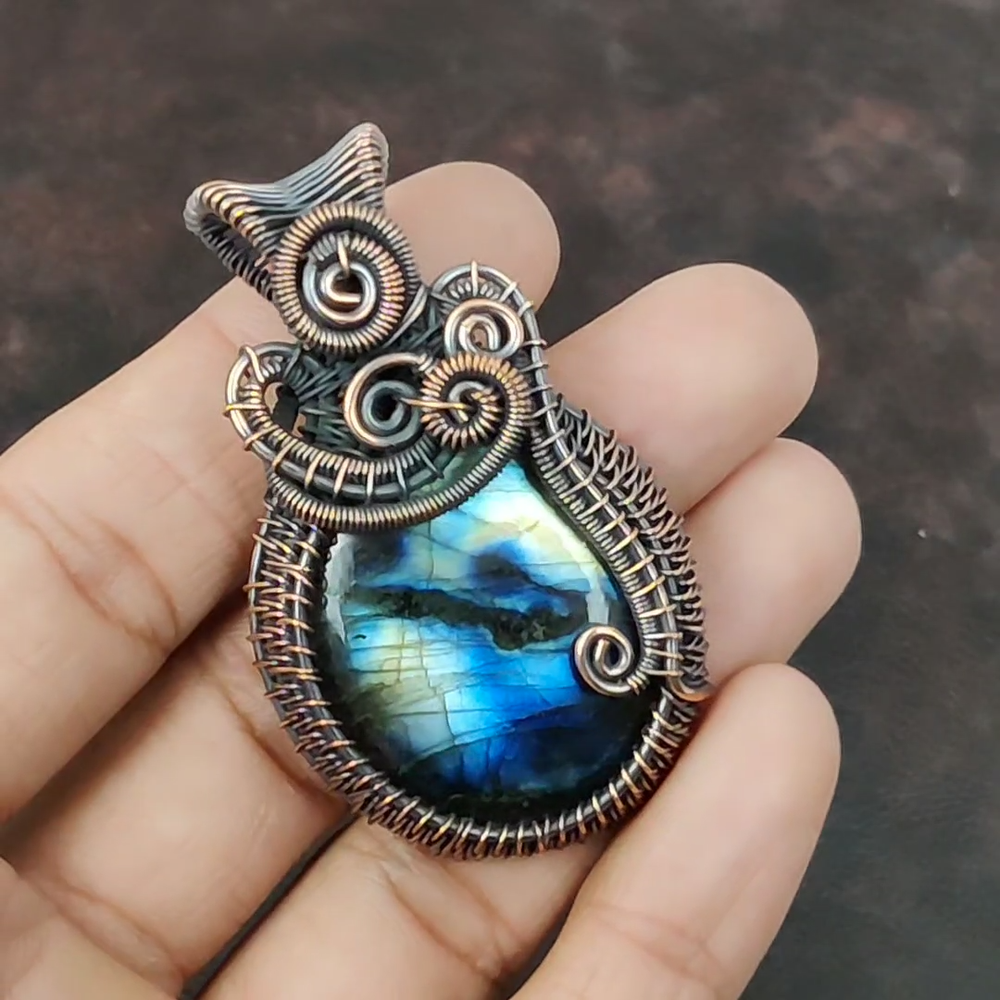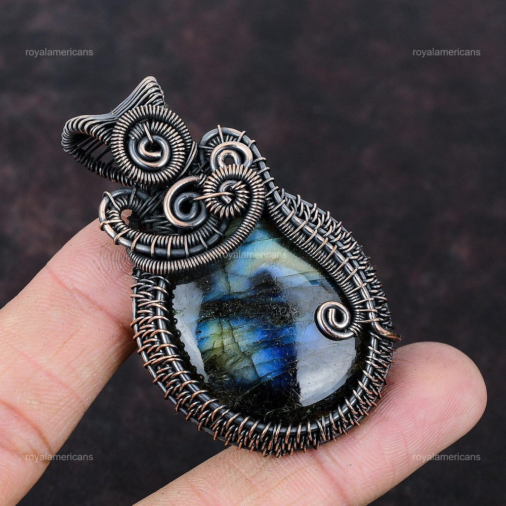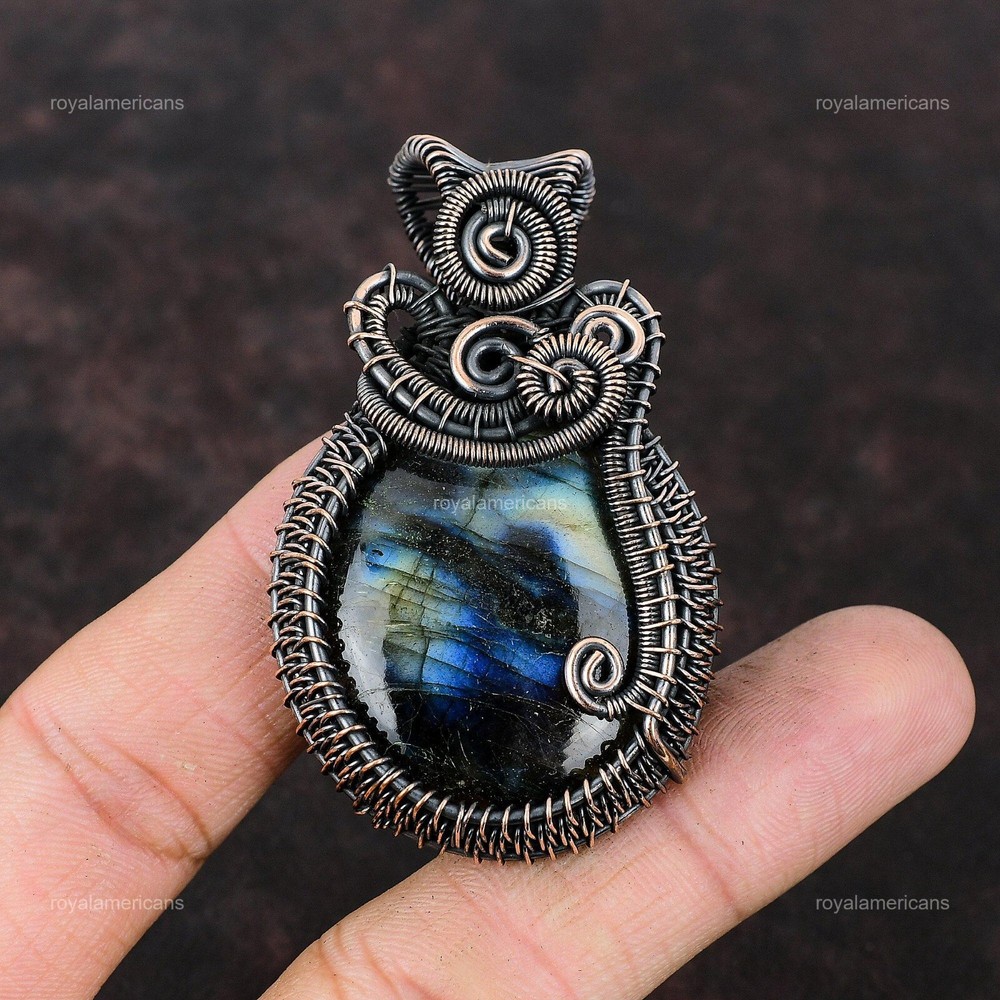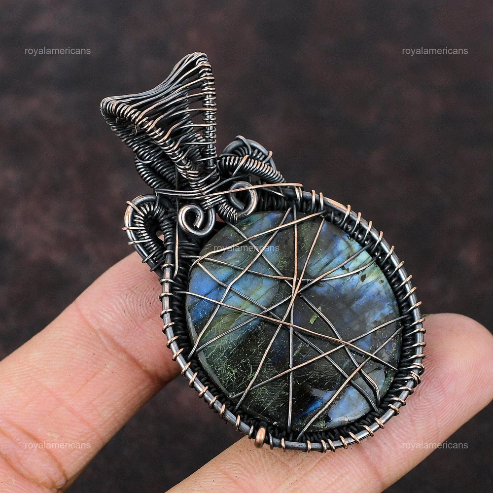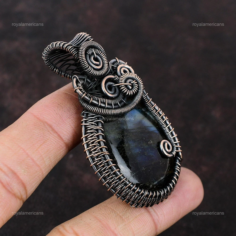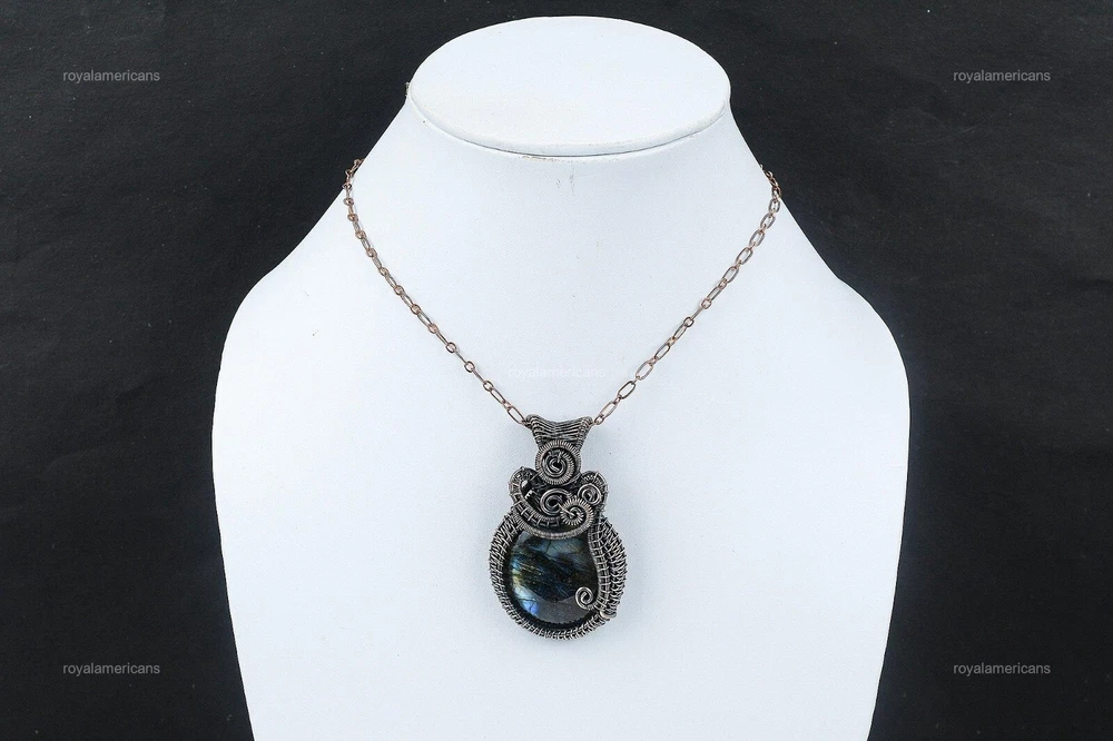 Note : Due to the natural formation of this gemstone. Slight variation in design and color are to be expected. Welcome to Royalamericans Mothers day Deal Copper Labradorite Gemstone Graduation Art Deco Pendant Jewelry Handmade Pendant, Wire Wrapped Pendant, Wire Wrapped Jewelry, Copper Pendant, Copper Wire Pendant, Wrapped Jewelry, Wire Wrap Pendant, Wire Wrap Jewelry SKU : UWP-569 Gemstone : Labradorite Stone Shape : Oval Metal Purity : Unknown Copper Length : Millimeters Width : Millimeters Copper has been used for jewelry making for thousands of years, dating back to ancient civilizations such as the Egyptians, Romans, and Aztecs. Copper was valued for its beauty, versatility, and durability, and was often used to make everything from jewelry and coins to cookware and tools. In addition to its historical significance, copper jewelry also offers several benefits. Copper is a natural conductor of heat and electricity, which makes it ideal for energy healing and therapeutic purposes. Wearing copper jewelry is believed to have various health benefits, such as improving circulation, reducing inflammation, and boosting the immune system. Some people also believe that copper jewelry has the ability to balance energy and improve mood. For Mother's Day Gift For Father's Day Gift For Promise For Valentine's Day For Halloween Party For Christmas Day Gift For New Year Party For Mom For Her If you can't find the information you need or need some advice for your design? Feel free to contact us. We are fast to reply :) All our work is made by hand with Love and Care in our workshop Thank you so much for visiting and hope you enjoy shopping with us Royalamericans is committed to delivering the best quality sterling silver jewelry to customers. As a handmade jewelry manufacturer, we offer an extensive selection of copper gemstone jewelry that showcases the brilliance of our craftsmanship. We are an experienced handmade jewelry supplier with expertise in embellishing gemstones to suit every style. We offer you the liberty to create your jewelry ensemble with sparkling, earthy, and pure gemstones. Our Talented artisans masterfully handcraft each piece of jewelry you see here. Our pieces are made with genuine gemstones.