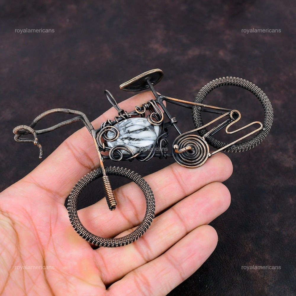 Note : Due to the natural formation of this gemstone. Slight variation in design and color are to be expected. Welcome to Royalamericans Mothers day Deal Copper Natural Pinolith Jasper Cycle Daughter Pendant Jewelry Handmade Pendant, Wire Wrapped Pendant, Wire Wrapped Jewelry, Copper Pendant, Copper Wire Pendant, Wrapped Jewelry, Wire Wrap Pendant, Wire Wrap Jewelry SKU : UFWP-4153 Gemstone : Pinolith Jasper Stone Shape : As Seen In Picture Metal Purity : Unknown Copper Length : Millimeters Width : Millimeters Copper has been used for jewelry making for thousands of years, dating back to ancient civilizations such as the Egyptians, Romans, and Aztecs. Copper was valued for its beauty, versatility, and durability, and was often used to make everything from jewelry and coins to cookware and tools. In addition to its historical significance, copper jewelry also offers several benefits. Copper is a natural conductor of heat and electricity, which makes it ideal for energy healing and therapeutic purposes. Wearing copper jewelry is believed to have various health benefits, such as improving circulation, reducing inflammation, and boosting the immune system. Some people also believe that copper jewelry has the ability to balance energy and improve mood. For Mother's Day Gift For Father's Day Gift For Promise For Valentine's Day For Halloween Party For Christmas Day Gift For New Year Party For Mom For Her If you can't find the information you need or need some advice for your design? Feel free to contact us. We are fast to reply :) All our work is made by hand with Love and Care in our workshop Thank you so much for visiting and hope you enjoy shopping with us Royalamericans is committed to delivering the best quality sterling silver jewelry to customers. As a handmade jewelry manufacturer, we offer an extensive selection of copper gemstone jewelry that showcases the brilliance of our craftsmanship. We are an experienced handmade jewelry supplier with expertise in embellishing gemstones to suit every style. We offer you the liberty to create your jewelry ensemble with sparkling, earthy, and pure gemstones. Our Talented artisans masterfully handcraft each piece of jewelry you see here. Our pieces are made with genuine gemstones.