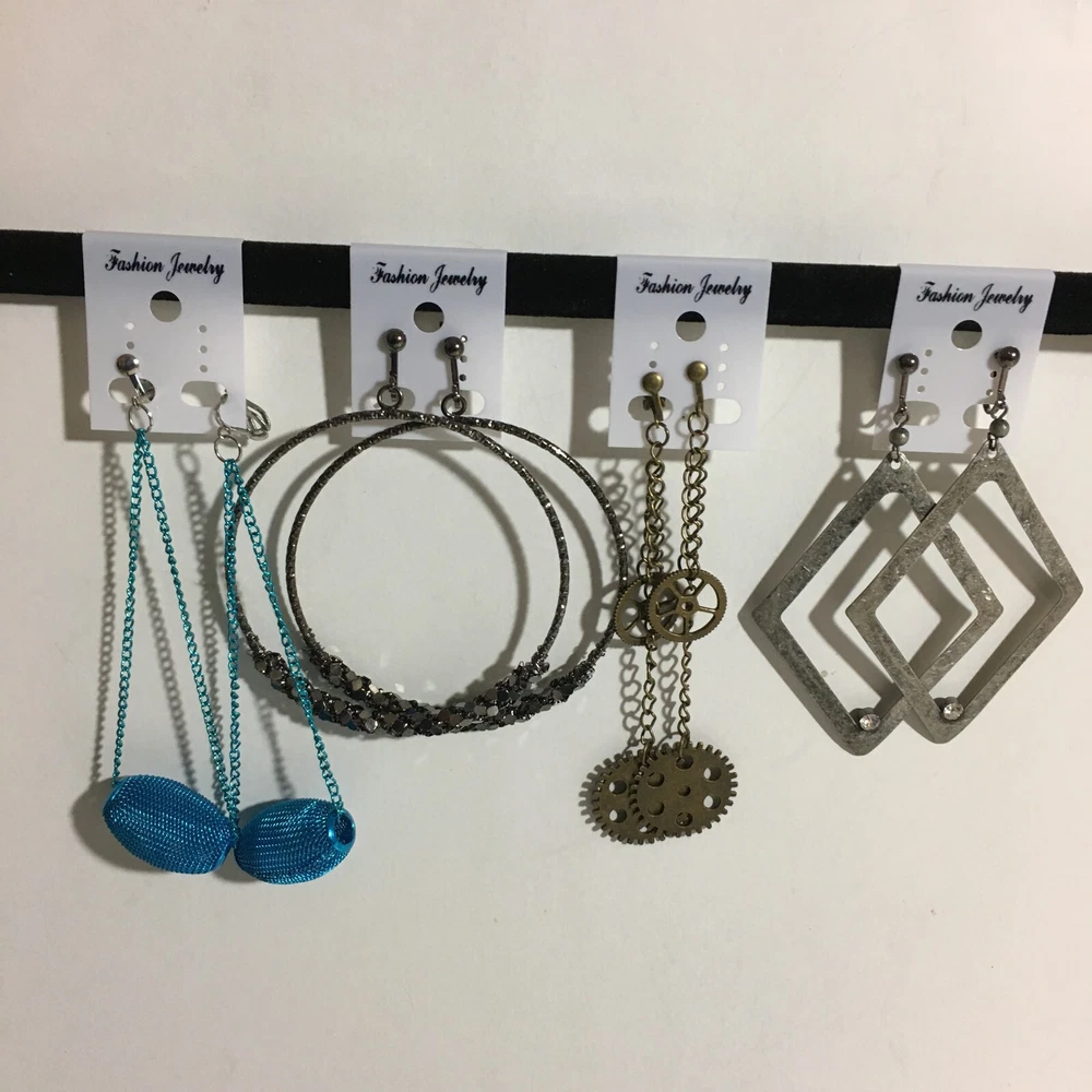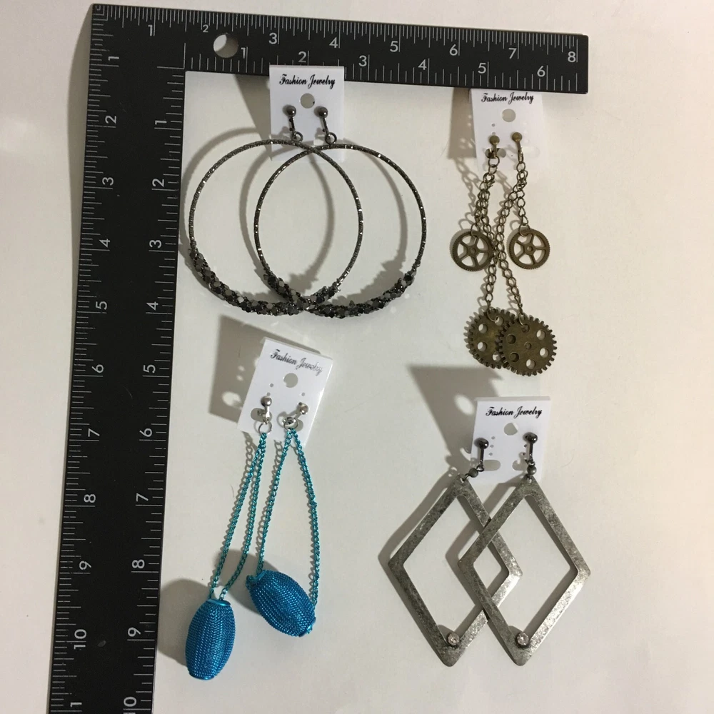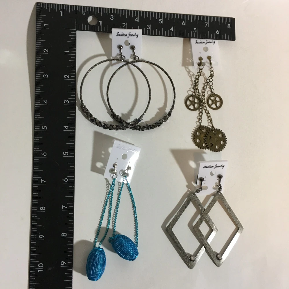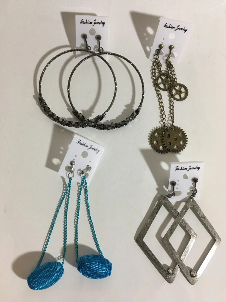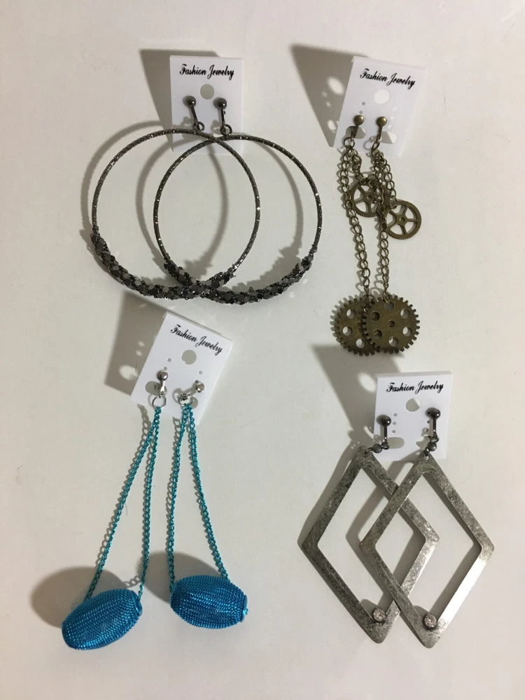 Mothers Day Gift Large Resin Metal Chain Clip Earrings 4 Pair Dangle USA Made E6