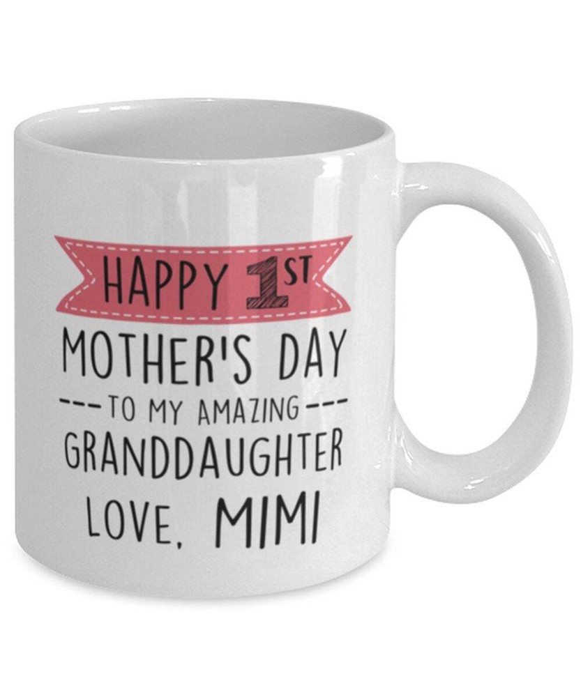 Mothers Day Granddaughter Mug First Mother Day Gift From Mimi Mimi Product Details.. This high quality 11oz. ceramic white mug has a premium hard coat that provides crisp and vibrant color reproduction sure to last for years. Perfect for all hot & cold beverages. The highest quality printing possible is used. It will never fade no matter how many times you wash it. Material: 100% Ceramic. Print both sides. Dishwasher and Microwave Safe. High Gloss + Premium White Finish. Printed in the U.S.A. Personalized & Custom. We support personalized and custom mug to add custom, when placing an order, you can add notes to the "order note" in shipping address section. Also you can contact us directly via message. Shipping Info. Ready to ship in 1 to 2 business days, All products are made-to-order and proudly printed in the United States. Shipped by USPS and DHL, You will receive your order in 5-7 days. Replace & Refund. All products are defective during shipping broken, chipped will be replaced free of charge. You are not satisfied with the product, we will refund 100% money to you. If any other issues arise, please do not hesitate to message, we would be more than happy to assist you.