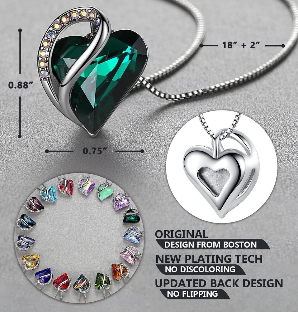Put on the most unique piece of jewelry - ’s Infinity Love Heart Pendant Necklace. Exquisitely crafted and curated, our silver necklace collections allow every woman to own a precious stone that speaks to herself. Infinity Love Wild Heart Design This heart necklace makes a striking fashion statement while building a strong, meaningful connection with your birthstone. It features a wild-heart-shaped birthstone crystal from Austria, adorned with a silver tone, shining chain, and embellishment that forms an infinity symbol. Every piece takes you across dimensions of time and space, the prosperity of life, and ultimately the triumph of love . Loved by Miss New York Our women’s jewelry are presented by Miss New York - Nicole Kulovany, who advocates women self-empowerment. These birthstone necklaces celebrate not only the versatility of outfits, but also the life stories behind them. Ornamental Pieces You Can Trust Jewelry prides itself on meeting strict product safety standards. All our crystal jewelry pass the European 1907/2006 REACH Regulation Annex XVII Items 23, 27, and 63. They are lead-free, nickel-free, and allergen-free. A Meaningful Gift You Deserve Treat yourself or a loved one to ’s crystal necklaces. Every jewelry piece or pendant set is delicately placed in a stylish classic jewelry box. A perfect anniversary gift for wife, Mother’s Day necklace for mom, Valentine’s Day gift for her, and a birthday gift for a friend! . A Commitment to Premium, High-End Refinement A U.S.-based fashion jewelry company, specializes in fashion silver necklaces, pendants, bracelets, and earrings. All our pieces of jewelry are crafted with genuine Austrian crystals in birthstone or healing stone colors. Add statements to your everyday style with a dainty necklace from ! Heart Necklaces with Birthstone Crystals - Our Infinity Love heart necklace for women is an original design from our studio in Boston and features a precious Austrian birthstone crystal. This classic yet innovative deisgn takes you across dimensions of time and space, the prosperity of life, and ultimately the triumph of love. It's a perfect gift for women ! Delicate Fashion Jewelry Gift that Fits - This woman’s necklace is adorned with a 0.75 x 0.88-inch emerald green birthstone crystal for May. They are rhodium plated and designed with an 18-inch chain plus 2-inch extender, and a lobster claw clasp. Strict Safety Standards - These birthstone charms and love gifts meet rigid safety standards. Our jewelry collections pass European 1907/2006 REACH Regulation Annex XVII Item 23,27, and 63, and are lead free, nickel free, and allergy free.All of our jewelry products are polished by hand. Crystal Necklace for Ladies Like You - Honor your inner royalty with this unique crystal heart pendant necklace. Presented by M3iss New York - Nicole Kulovany, this heart necklace is a regal, symbolic statement piece that unveils your feminine spirit. Thoughtful Gifts for Women - Looking for exceptional Mother’s Day, birthday, anniversary, holiday, and Valentine’s Day gifts for your wife, mom, sister, daughter, or friends? Each necklace is stored in an elegant white, silver-embossed gift box and gift bag, making it an ideal ladies necklace for the special women in your life.