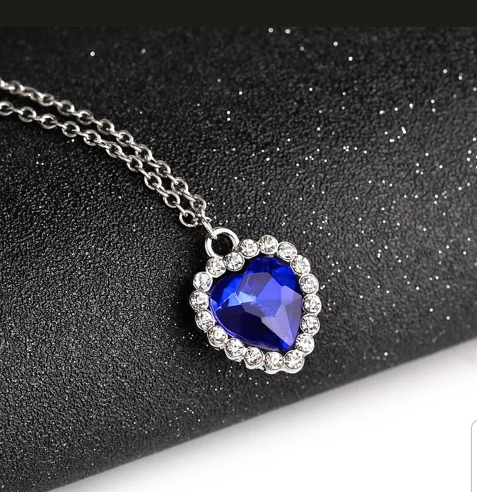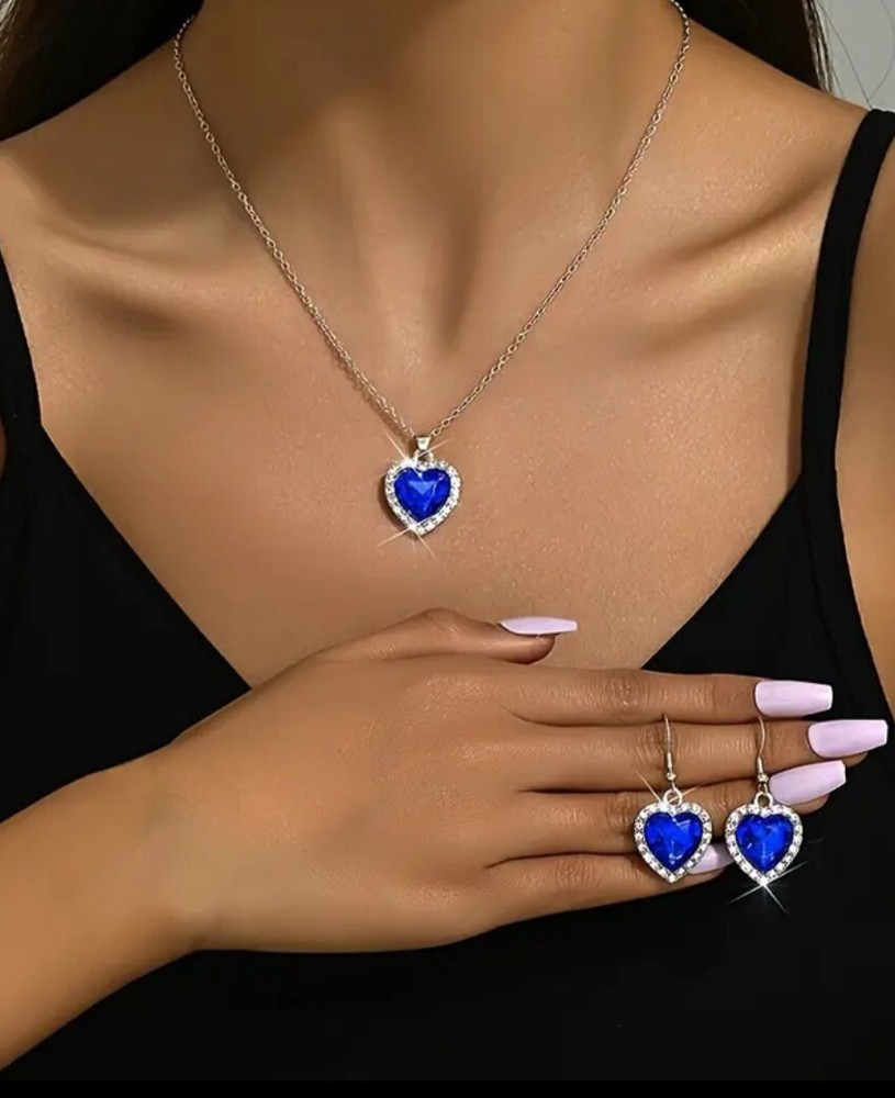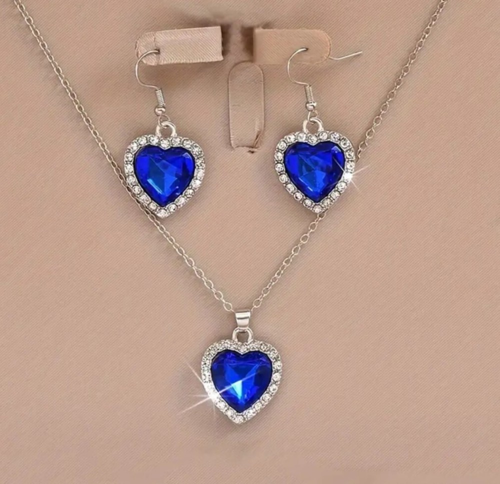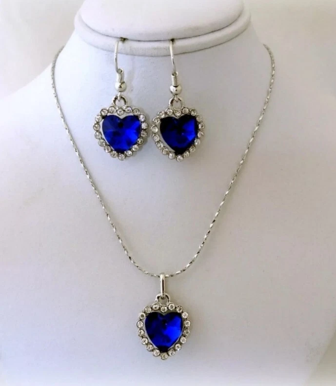 NEW ~ Silver Plated Heart Pendant Necklace & Earrings Set with Sapphire Blue Swarovski Austrian Crystal Elements & Clear Rhinestones NEW ARRIVAL !! ~ LIMITED QUANTITIES !! Showcase Presentation: Item Necklace Condition New Metal Silver Plated Closure Lobster Claw Clasp Design / Motif Heart Approximate Item Weight 3 gms Approximate Measurements The Heart is 5/8" Wide x 3/4" Long with the Bail. The Silver Plated Delicate Wheat Link Chain adjusts from 17" to 19" Gemstone Information Crystal Swarovski Austrian Crystal Elements & Rhinestones Color Sapphire Blue Crystals Accent Stone Color Clear Rhinestones Showcase Presentation: Item Earrings Condition New Metal Silver Plated Hooks Closure Fish Hooks with Plastic Plugs Design / Motif Dangle Earrings ~ Heart Approximate Item Weight 4 gms For the Pair Approximate Measurements 5/8" Wide x 1-1/4" Long Gemstone/ Material Information: Stone Color Sapphire Blue Crystals Accent Stone Color Clear Rhinestones Track Page Views With Auctiva's Counter