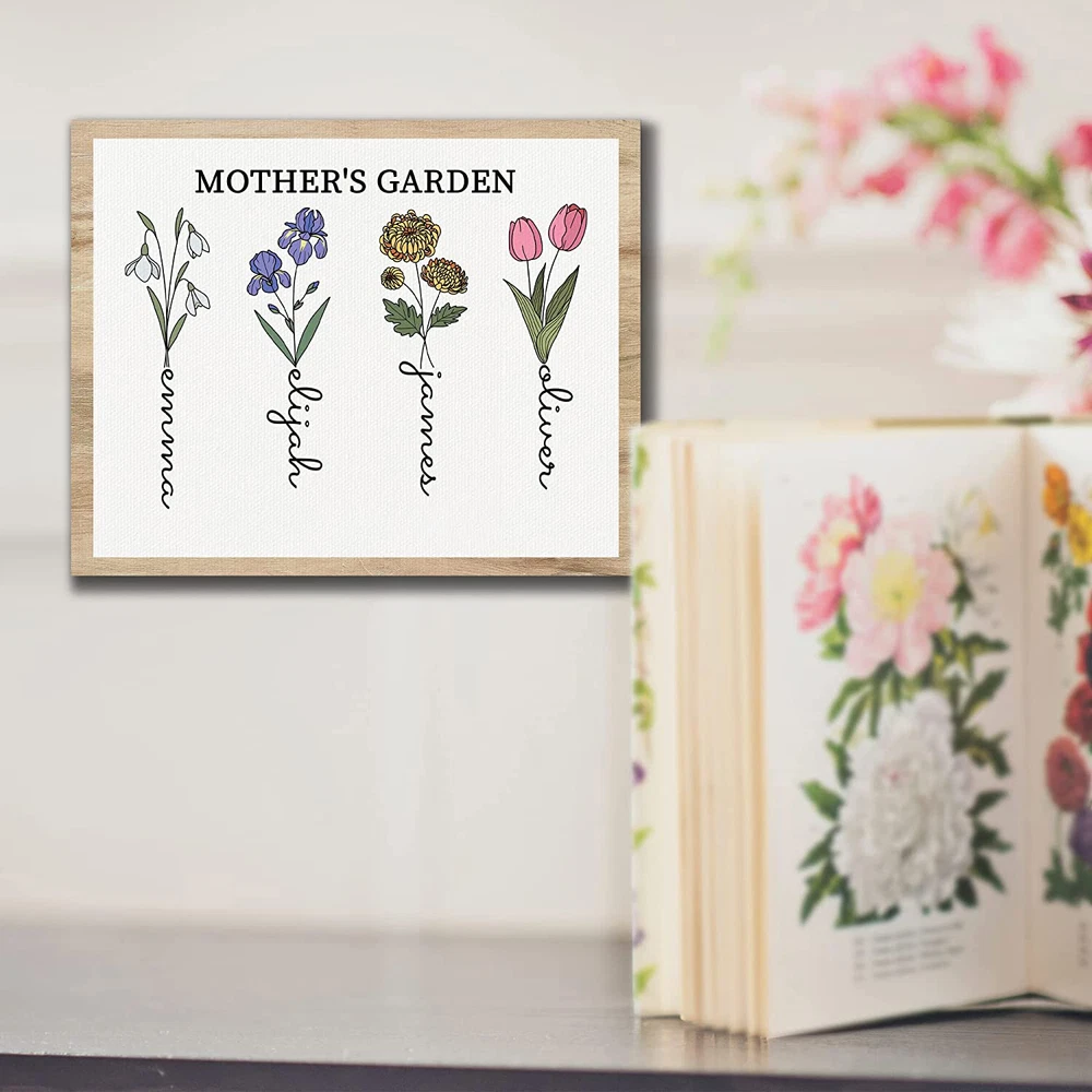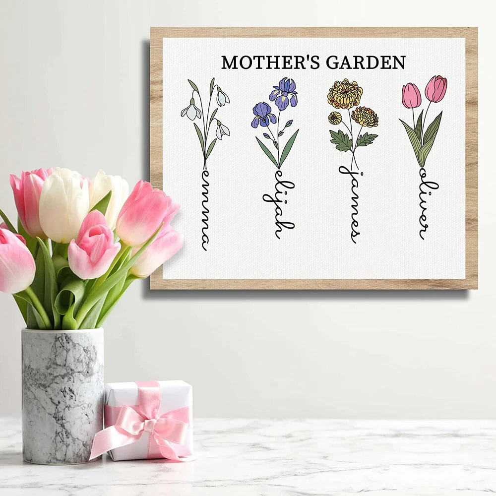 Mothers Day Gift Unique for Mom, Birth Month Flower Mothers Garden Canvas Poster