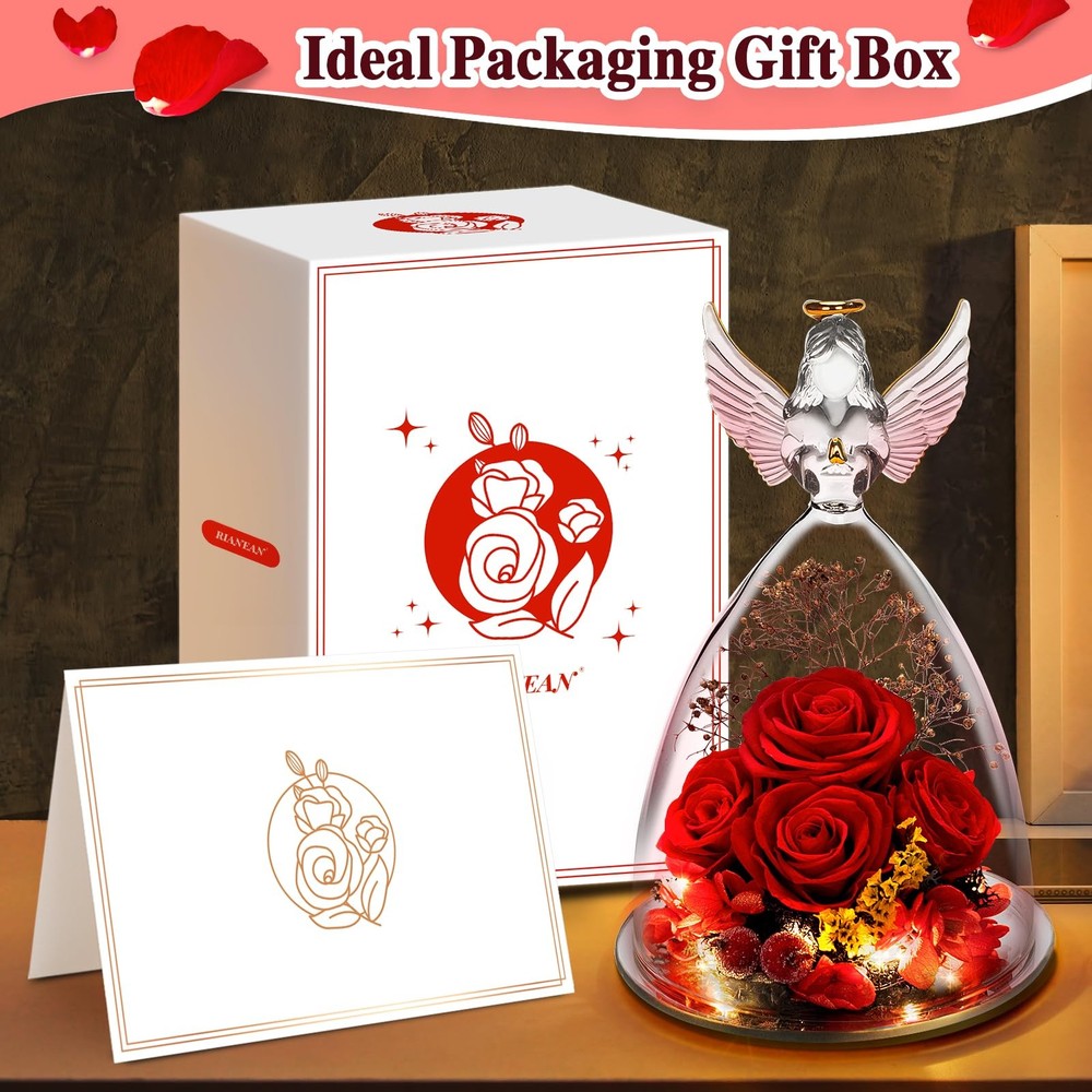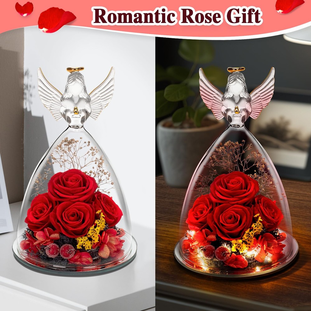 Valentines or Birthday Gift for Women and Mom - Preserved Real Rose with Angel