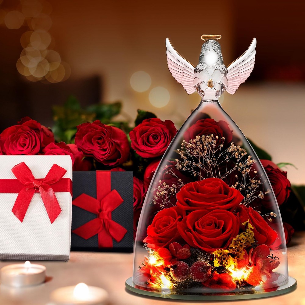 This stunning angel rose display is absolutely breathtaking! The deep red preserved roses look elegant inside the glass angel figurines, and the soft LED glow adds a magical touch. It’s such a thoughtful, long-lasting gift—perfect for moms, grandmas, or any special woman in your life. The craftsmanship is beautiful, and it makes a heartfelt keepsake for any occasion. She’ll love displaying it proudly!
