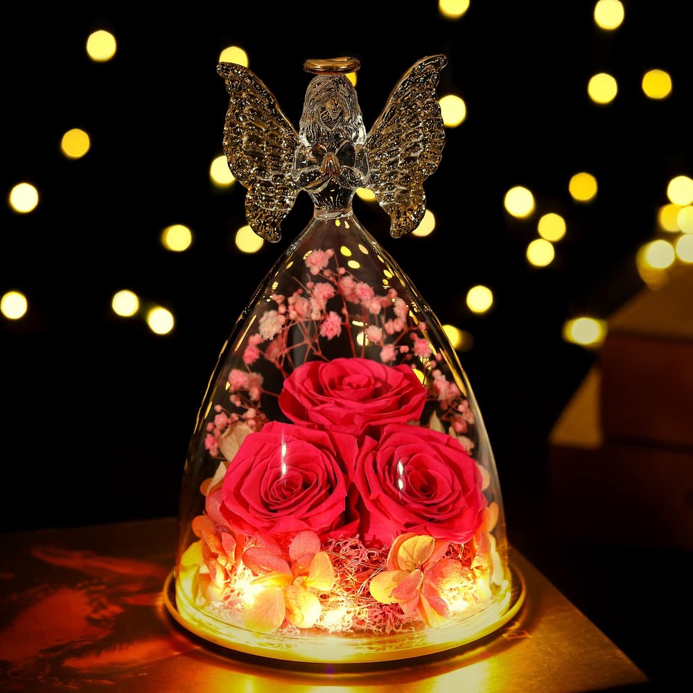 Angel Roses Mothers Day Mom Gifts for Women Preserved Flower Rose Forever Fresh Flowers for Delivery Prime Mother's Day Birthday Gifts for Grandma Patented Product for both Angel Figurines and Inside Decorative Flower Bouquet. Angel Rose Gifts,Three Forever Real Rose in Angel Figurines Gifts for Women, Angel Guardian with Rose Gift for Valentine Day Mothers Day Birthday Christmas Gift Mothers Day Gift and Rose flower for Valentines Day: It is the best gift for mother,grandmother,wife,fiancee,girlfriend, friends,colleagues and classmates on Mother's Day, Christmas, Valentine's Day 【Size】:The diameter of the angel is 11 cm (4.33 inches) and the height is 17 cm (6.7 inches)Glass Angel with three roses inside. 【No Withering, Easy to care,Gift for Women】Put it in cool place, it will stay for 3-5 years to forever. Your loved one will have a good mood when she looks at it everyday. Avoid Direct Sunlight Romantic Gift for her: Sending a romantic and surprise gift for the women who is important in your life on Romantic Valentine's Day, Mother's Day, Christmas, Thanksgiving, Wedding, Anniversaries, Marriage Proposals,New Year's Day or any other special occasion.