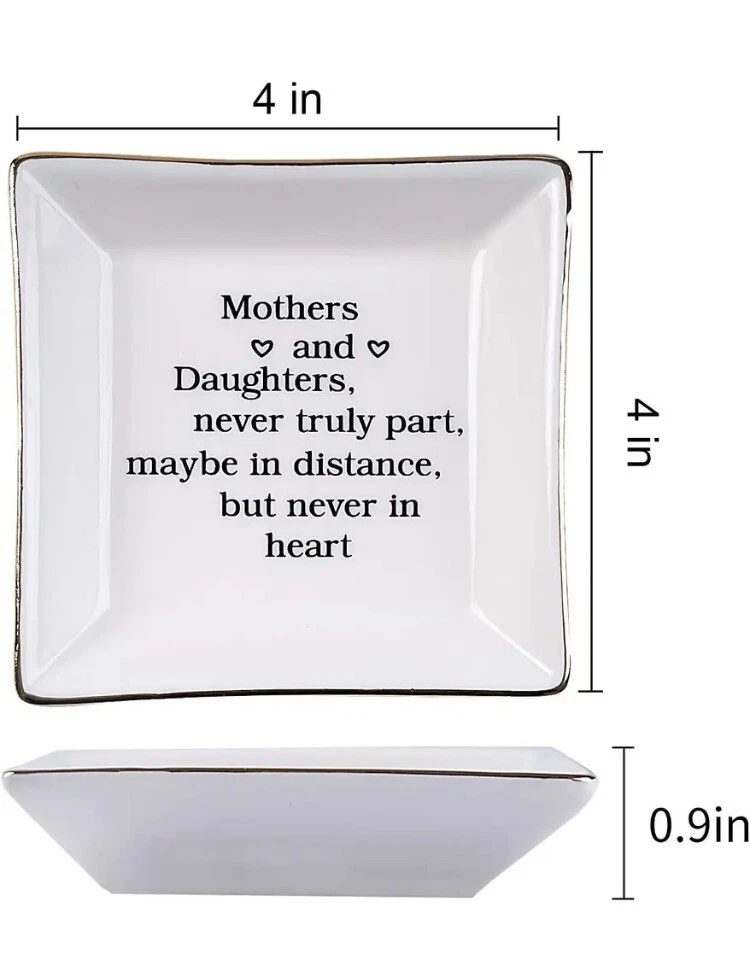 This beautiful ceramic ring dish is the perfect gift for any occasion, from Mother's Day to Valentine's Day. It features a square shape and a single compartment, making it perfect for indoor use. The dish is polished, smooth and safe for your use, and it has been painted with a beautiful finish that will complement any décor. Measuring 4 inches in diameter and 0.9 inches in height, this decorative jewelry tray is lightweight, weighing just 5.3 ounces. It is freestanding, making it easy to display on any surface. Whether you're looking for a gift for your mom or a special woman in your life, this ceramic ring dish is sure to please.