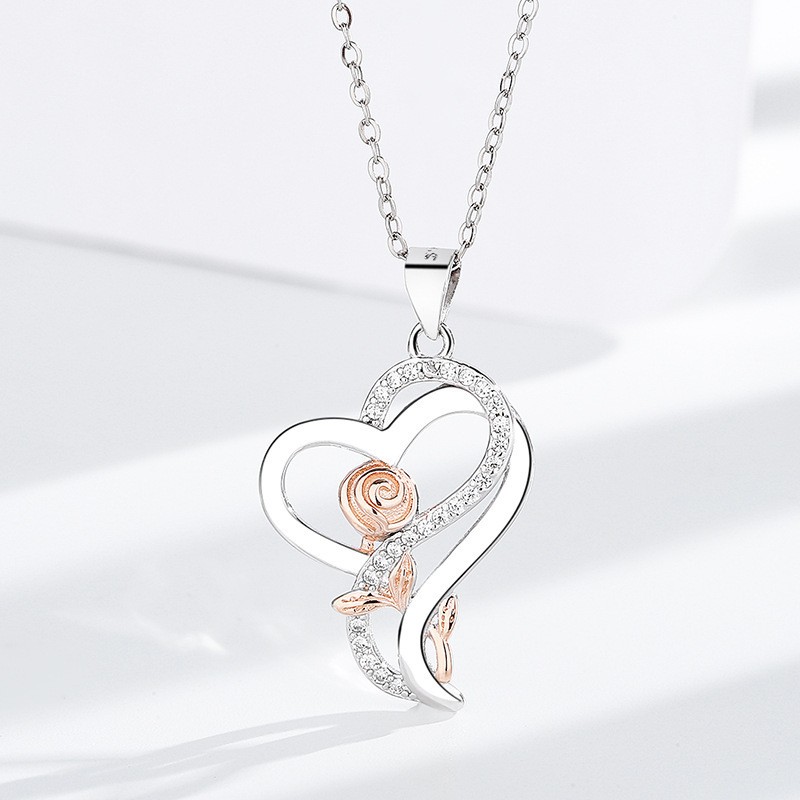 Material Rhinestone Metal type Sterling Silver Clasp type Spring Ring Chain type Cable Gem type Cubic Zirconia About this item NECKLACE FOR WOMEN : Unique Rose Heart Design can Better Convey the Feelings Between you and her. she will be reminded of your love and all of the laughter you've shared. They express sweet love to each other, It is the best love confession for you.Heart love Rose Silver Necklaces Birthday Valentines Day Christmas Jewelry Gifts for Women Girlfriend Wife Her Mom from Daughter GIFTS FOR WOMEN : Smooth Polished Surface,Embellished with Sparkly Cubic Zirconia,Comfortable to Wear. Heart Rose love Neclesses Birthday Mothers Day Xmas Jewelry Present for Her Girlfriend Wife Mom Daughter GIFT IDEAS : Heart Rose Neckless Pretty Gift box, Thank You Card,Silverware polishing cloth,and ready for giving. Makes a Sentimental Surprise for Any Awesome lady,We also have the best gift ideas for wife or girlfriend on christmas anniversary or birthday PERFECT QUALITY: Mom Necklace are Adjustable,length works on practically anyone, Will Not Turn Your Skin Green or Red or Itchy,Perfect Mother's Day necklace for Women on Christmas Valentines day,Mothers day, Birthday, Anniversary or any special occasion Satisfaction: We value your shopping experience very much, so if you have any questions, please feel free to contact us