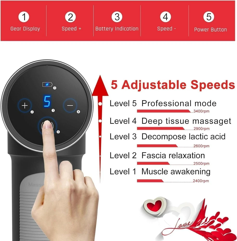 ❤️ Easy To Use - Xllent Abandon tedious operations and adopt a humanized touch panel design to ensure that every user can use it immediately after getting it. This massage gun has 5 speed levels,designed to meet your massage needs. 👩💼Low Noise - Using high torque motor and ultra-quiet sliding technology,it brings a high-power massage experience in a low-noise working state,and there is no need to worry about disturbing others when using it. ✅ Lightweight Design - Xllent Stay away from volume! The Xllent massage gun abandons the large and exaggerated design of the traditional fascia gun. After ergonomic optimization,it is more convenient and portable in daily life. 💪Humanized Massage - Ergonomic design.The handheld massage gun is equipped with 6 washable and replaceable massage heads,which can perform targeted massage for different muscle groups,help relieve muscle soreness,relax and shape different muscle parts. ✅ 2024 Best Gift - The deep muscle massage gun Great for athletes and bodybuilders.If you are still having a headache about choosing a gift,then this massage gun must be the best gift choice for Birthday Valentine's Day,Mother's Day,Fathers Day Gifts