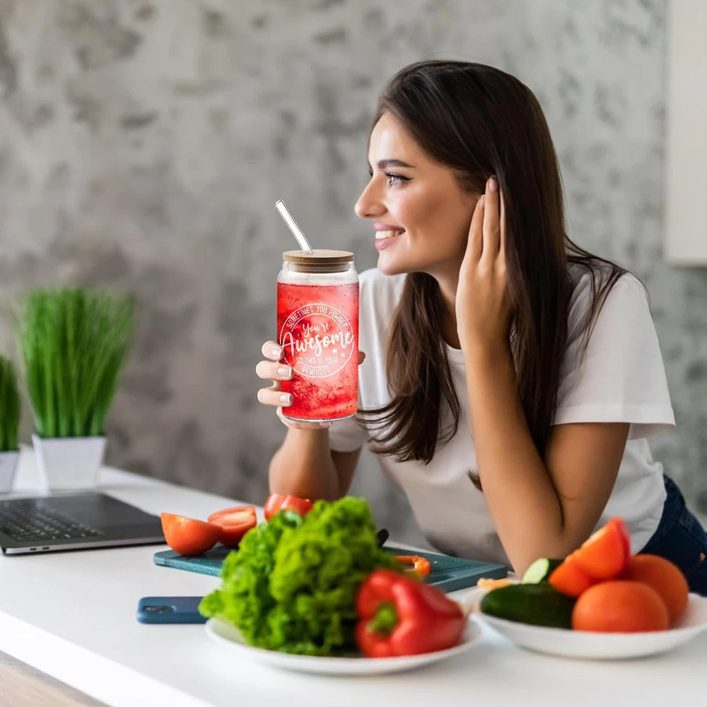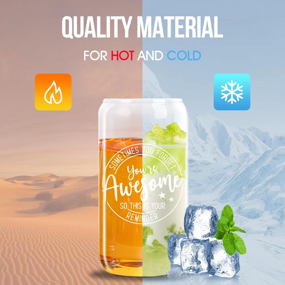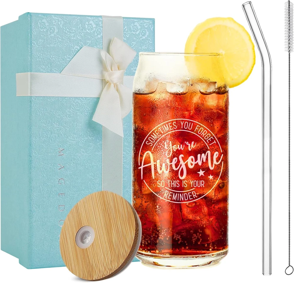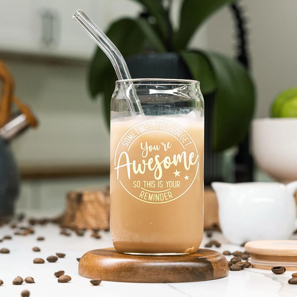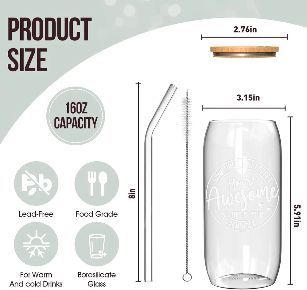 Sometimes You Forget Your Awesome Gifts - The cup is suitable for Mother Day gifts for mom from daughters/sons, gifts for best friend, birthday gifts for women, thank you gifts for her, etc. It's a considerate present to bring joy and create lasting memories together. Inspirational Gifts for Women - Whether on Thanksgiving Day, Christmas Day, Mother Day or her birthday, this practical cup will surprise your mom, best friend, or any special woman in your life. Premium Material - Made of glass, our cup is non-toxic and leadless. High-grade glass construction ensures durability and long-lasting use, making it a practical addition to home and office. Portable & Practical - The 16oz glass cup is lightweight and delicate. Its capacity and beautiful design are perfect for women. It is widely loved in homes, kitchens, cafes, and bars for cocktails, tea, morning coffee, smoothie, soda, beer, etc. Complete Package - You will receive a nice gift box that includes a 16oz glass cup with lid, a straw and a cleaning blush. To prevent breaking the glass, we recommend hand washing for the cup. Mothers Day Gifts for Mom, Thank You Gifts, Birthday Gifts for Women Her Wife Best Friend, Sometimes You Forget You’re Awesome Glass Cup with Straws, Lids & Cleaning Brush