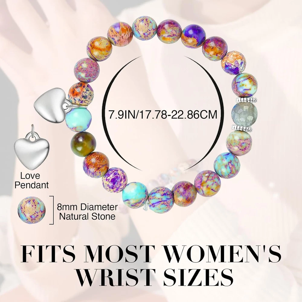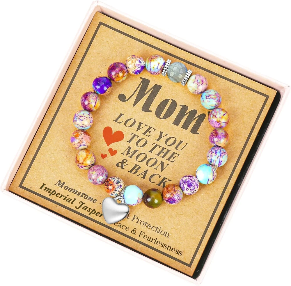 Menu Other Items Feedbacks About Us Contact Us Add To Favorites Mothers Day Gifts from Daughter Son Crystal Moonstone Bracelet for Women Birthday Thanksgiving Day Christmas Valentine'S Day Gifts for Mom Auntin Grandma Mommy Product Description Every Natural Bead is High Quality Genuine Gemstone and has been carefully Selected Manually One By One. Every Natural Crystal is High-quality and Different . All of Them Bring the Strong Energy and Good Vibes for Her. Solid Craftsmanship make sure it's super comfortable for dailywear and will not easily fall off/come apart. This meaningful and natural crystal bracelet can be worn and protect her for a long time . Imperial Jasper can bring her Peace and Fearlessness . Packaged with Care & Giftable The beautiful bracelet has been packaged with care in an elegant gift box. Celebrate the love and warmth of your mom, aunt, or grandma with our exquisite Crystal Moonstone Bracelet. This beautiful bracelet features a delicate moonstone heart pendant, symbolizing the eternal bond between loved ones. The soft pink hue adds a touch of femininity and elegance to any outfit. Perfect for birthdays, Valentine's Day, Mothers Day Gifts,or just to show your appreciation It's great as Birthday gift idea for mom, Birthday gift idea for mom from daughter, Birthday gift idea for mom from son, Birthday gift idea for mother mum mama mummy. Mothers Day gifts for mom, Mothers Day gifts from daughter, Mothers Day gifts from son, Valentine Day gifts for teenage girls, Valentine Day gifts for women, Mother's Day gifts for mom. Every Natural Bead is High Quality Genuine Gemstone and has been carefully Selected Manually One By One. The Natural Moonstone symbolises Motherhood, Love, Happiness, Protection and New Beginnings, and it helps to create a Strong Bond which is True Pure Love between the Mother and her Daughter/Son. Jade can Attract Luck, Prosperity, Good Longevity to mama. Pink Zebra Jasper bracelet combined with Balance Pink Zebra Jasper and Love Moonstone. can help mama Find her Balance in life. mom jewelry gifts Perfect for birthdays, Valentine's Day, or just to show your appreciation, this bracelet is a thoughtful gift idea for mom Crafted with care and attention to detail, it is a unique and practical gift that will make your mom feel truly special. Surprise her with this stunning piece and watch her eyes light up with joy. Show your mom how much she means to you with our Crystal Moonstone Bracelet - a gift she will cherish forever. birthday gifts for mom Perfect for birthdays, Valentine's Day, or just to show your appreciation, this bracelet is a thoughtful gift idea for mom Crafted with care and attention to detail, it is a unique and practical gift that will make your mom feel truly special. Surprise her with this stunning piece and watch her eyes light up with joy. Show your mom how much she means to you with our Crystal Moonstone Bracelet - a gift she will cherish forever. birthday gifts for grandma Perfect for birthdays, Valentine's Day, or just to show your appreciation, this bracelet is a thoughtful gift idea for grandma Crafted with care and attention to detail, it is a unique and practical gift that will make your grandma feel truly special. Surprise her with this stunning piece and watch her eyes light up with joy. Show your grandma how much she means to you with our Crystal Moonstone Bracelet - a gift she will cherish forever. birthday gifts for aunt Perfect for birthdays, Valentine's Day, or just to show your appreciation, this bracelet is a thoughtful gift idea for aunt Crafted with care and attention to detail, it is a unique and practical gift that will make your aunt feel truly special. Surprise her with this stunning piece and watch her eyes light up with joy. Show your aunt how much she means to you with our Crystal Moonstone Bracelet - a gift she will cherish forever. mom jewelry birthday gifts for mom birthday gifts for grandma birthday gifts for aunt Item Specification Diameter 1.96 inches Metal stamp Stainless steel Chain Cord Chain, Bead Chain Color mom-purple Product Dimensions 1.96 x 1.96 x 0.31 inches; 1.92 ounces Material Stainless Steel Metal Stainless Steel Length 1.96 inches Item Length 1.96 inches Department womens Clasp Lobster Claw Dimensions Shipping Returns Additional Info Product Dimensions: 1.96 inches x 1.96 inches x 0.31 inches. Weight: 1.92 oz Fast shipping is very important for us. Our standard shipping service is FREE. Your order will be shipped within 1-3 business days upon full payment received. Most items are delivered within 3-5 business days, however, please allow 3-10 business days. We are shipping only to USA. We only ship to the confirmed Paypal address. We reserve the right to cancel any order for any reason at any time. We are not responsible for undeliverable addresses. We offer a 30 day return policy from checkout winning date. Your satisfaction is guaranteed! If for any reason you are unhappy with your item, just return it within 30 days for a full refund, minus shipping cost. Please contact us prior to initiating a return so that we can issue you a refund authorization. Items defective upon receipt must be packaged in their retail packaging as if new and returned with a detailed description of the problem. Return shipping fees are not refundable. We reserve the right to decline any returns if the above guidelines are not followed. All of our items, unless otherwise stated, will only run on 120 volts. Please check to make sure your country complies with these specifications. If you have a problem or question regarding your transaction please contact us before leaving any type of feedback. We will work with you to resolve any problem you may have.