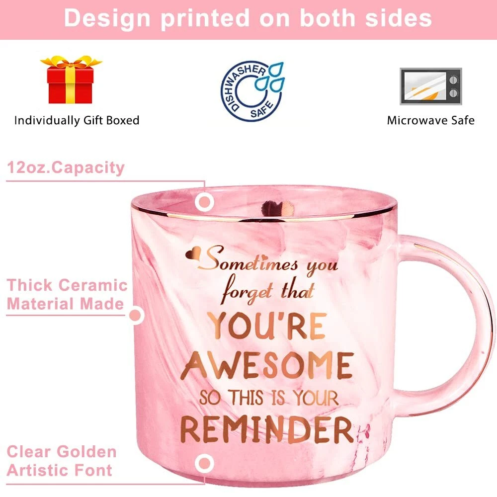 Quimoy Mothers Day Gifts -You Are Awesome Mug, Thank You Gifts for Mom Women Wife Sister Friends, Pink Marble Coffee Cup Gifts for Mothers Day, Graduation, Birthday, Engagement-12 Ounces Safe to Use - The coffee mug is microwave and dishwasher safe and won't burst easily. The text on the surface of the coffee cup is made of high-grade ink, which is bright in color, durable, and green and pollution-free. Exquisite Design - Coffee mug made of white high quality ceramic, capacity 12oz, size is 3.2 x3.6 inch, with a handle, high temperature resistance, winter warming practical. The surface is printed with Mother's Day Valentine's Day Christmas slogan, can make the holiday atmosphere more intense, all have a good time. Exquisite Packaging - Each coffee mug is packed in an individual gift box, size is 4.4 "x4.4 "x4.7"(inch), beautifully packaged, simple and beautiful, can be directly as Christmas, Boss's Day, graduation ceremony, Valentine's Day, Mother's Day, Women's Day, anniversary, New Year's gift, Christmas gift to others. Applicable to Multiple Scenes - Coffee mug is not only for coffee lovers, but also for tea lovers, can be used as Mother's Day, Valentine's Day, birthday gifts, Christmas stocking stuffers, low cost holiday gifts, thank you gifts, put into special gift baskets, humorous gift bags, and give to your favorite family members. Surprise Gift - This fun pink coffee mug is the cutest holiday gift for your mother, friends, elders and girlfriends, and it's a great idea to show your love and appreciation with this mug. It will remind them of fond memories every time they use this mug. Shipping We offer FREE shipping on all orders! We ship within Three business days of payment, usually sooner. We use a selection of shipping services such as UPS, FedEx, USPS etc. We only ship to the lower 48 states, no APO/FPO addresses or PO Boxes allowed. Local pickups and combined shipping options are not provided at this time. International buyers – please note: Import duties, taxes, and charges aren't included in the item price or postage cost. These charges are the buyer's responsibility. Please check with your country's customs office to determine what these additional costs will be prior to bidding or buying. Order Cancellation Policy * Order Cancellation Policy ** You can return a product for up to 30 days from the date you purchased it. 1. The seller reserves the right to cancel the special case only due to eBay cancellation fee. 2. The decision of seller is the final. 3. The seller will respond to the cancellation request within 2 business days. Please wait for the result of cancellation. 4. In case the cancellation is not completed by some reasons, the buyer can follow the options below to get the refund. 4.1 The buyer can reject the item when it arrives. 4.2 The buyer can send the item back to the seller within 30 days If the buyer receives item (USA Shipment ONLY). The seller will provide the FREE return label to the buyer when the buyer opens " Return Item" case on eBay by using the reason as "Change my mind" ONLY. 5. When buyer has placed the order. The order will be processed and completed by automatic warehouse system within 5 minutes. In case that buyer sends the cancellation request after 5 minutes of placing the order, the request will be rejected. **Sending direct message to cancel the order is not allowed for every case.* Return Policy - If buyer would like to return the items for refund or replacement, please CONTACT SELLER to receive the free return label from seller. The refund or replacement will be processed with the tracking number of return label which is provided by seller only. The other ways of return which are not approved by seller will not be processed for the refund or replacement. Return You can return a product for up to 30 days from the date you purchased it. Any product you return must be in the same condition you received it and in the original packaging. Please keep the receipt. Payment We accept payment by any of the following methods: eBay Payments Please pay as soon as possible after winning an auction, as that will allow us to post your item to you sooner! Feedback Customer satisfaction is very important to us. If you have any problem with your order, please contact us and we will do our best to make you satisfied. Contact Us If you have any queries, please contact us via ebay. We usually respond within 24 hours on weekdays. Please visit our eBay store to check out other items for sale! Thank you for shopping at our store.
