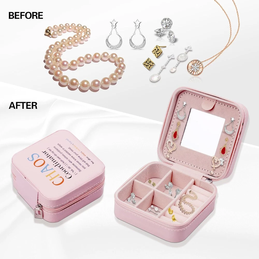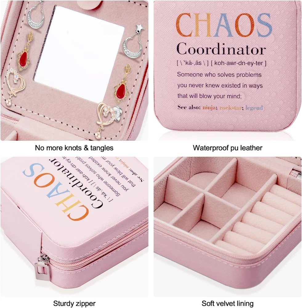 Gifts for Her Women,Chaos Coordinator Gifts,Trendy Travel Jewelry Case,Jewelry Box Personalized Mom Daughter Friends Female Coworker Nurse Teacher Assistant Secretary Administrative Manager Gifts Idea