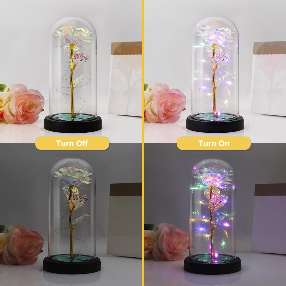 Gifts for Women,Womens Gifts for Christmas,Birthday Gifts for Women,Grandma Gifts for Christmas,Rose Flower Gifts for Women,Birthday Gifts for Mom,Glass Rose,Valentines Day Gifts Battery not included Rose Gifts:Gifts for mom, best friend gifts for women, nightmare before christmas gifts, stocking stuffers for women, gift baskets for women, sisters gifts from sister, grandma gifts, sister birthday gifts, wedding gifts for newlyweds, bridesmaid gifts for wedding day, wedding gifts for guests, valentines day gift for wife, anniversary gifts for parents, gifts for friends, valentines day gifts for daughter. The glass cover is not removable Gifts for Women:Valentines day gifts, wedding gifts, mothers day gifts, anniversary gifts, birthday gifts, housewarming gifts new home, retirement gifts, appreciation gifts, easter gifts, graduation gifts, teacher appreciation gifts, christmas gifts, retirement gift for woman, get well gifts for women, wedding registry gifts, memorial gifts, engagement gift, congratulations gift, return gifts for birthday party Glass Rose:Valentines day gifts for her, birthday gifts for women, valentines day gifts for mom, mom birthday gifts, anniversary gifts for women, valentines day gifts for women, birthday gifts for mom, anniversary gift for couple, gifts for grandma, roses for valentine's day, sister gifts, mom valentines day gift, birthday gifts for sister, anniversary gifts for him, grandma birthday gifts, valentines gifts for teachers, gifts for friends, mom gifts from daughters, sister valentines day gift Exquisite Box:Plastic base, lightweight and easy to carry. Powered by 3 AAA power(not included). LED rose light can use in daytime and nighttime for ambience and romance, symbol womens anniversary gifts of appreciation, best wishes, love, passionate and romantics. Great mother's day flowers delivery prime for women's decorations in bedrooms, office, bedside and table top. Size: 6*5.4inch/15*13.5cm Rose in Glass Dome:There is always a gift that expresses your heart, not whether it is expensive or not, but whether it tells you how important you are in my heart. We have red rose, colorful rose, blue rose, pink rose, purple rose you can choice