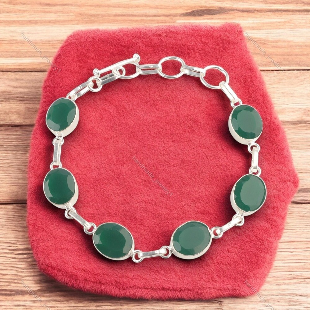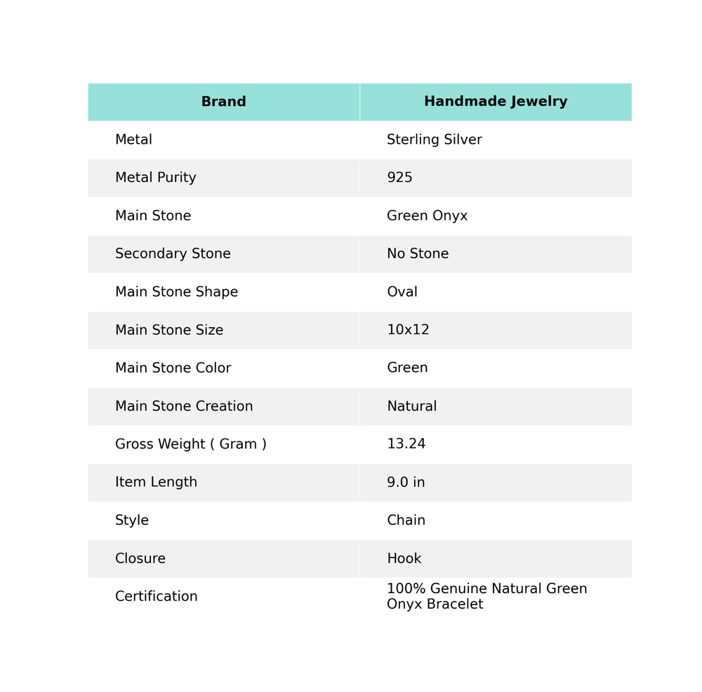handmade_jewelry1 Mothers day Deal Green Onyx Gemstone 925 Sterling Silver Chain Bracelet Jewelry Base Metal : Sterling Silver Metal : Sterling Silver Metal Purity : 925 Main Stone : Green Onyx Secondary Stone : No Stone Main Stone Creation : Natural Main Stone Treatment : Not Enhanced Certification : I guranteed authenticity of Bracelet. Features and further details We Are Selling Fashion Jewelry Since 1973 Additional Features: First See All Details items Specified Also Buy Items Details: 925 Sterling handmade_jewelry1 Package Includes: Poly Wrap Packing Contact us Payment eBay Payment Accept Return 30 Days Free Return Accept Shipping 14-30 Days India Post International Feedback I Hope I received 5-Star rating If your Any Question Also Please Contact me Than Any Negative Comment option Select Disclaimer Every Piece of Jewelry Tells a Story