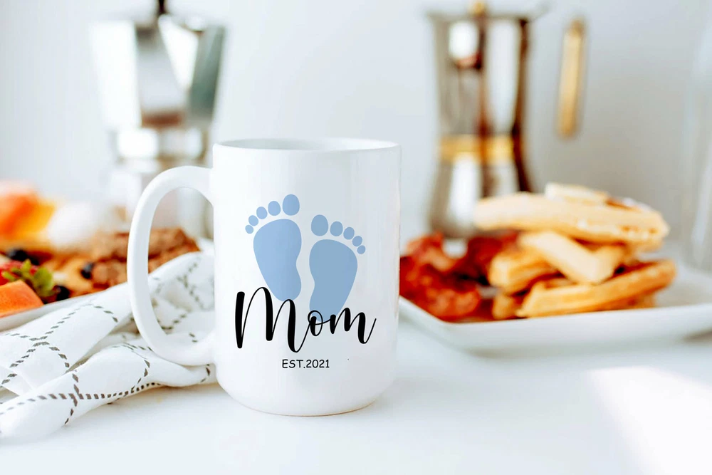 Mother's Day Mug Blue Baby Feet Mug Mom Established 2021 Gift For Expecting Product Details.. This high quality 11oz. ceramic white mug has a premium hard coat that provides crisp and vibrant color reproduction sure to last for years. Perfect for all hot & cold beverages. The highest quality printing possible is used. It will never fade no matter how many times you wash it. Material: 100% Ceramic. Print both sides. Dishwasher and Microwave Safe. High Gloss + Premium White Finish. Printed in the U.S.A. Personalized & Custom. We support personalized and custom mug to add custom, when placing an order, you can add notes to the "order note" in shipping address section. Also you can contact us directly via message. Shipping Info. Ready to ship in 1 to 2 business days, All products are made-to-order and proudly printed in the United States. Shipped by USPS and DHL, You will receive your order in 5-7 days. Replace & Refund. All products are defective during shipping broken, chipped will be replaced free of charge. You are not satisfied with the product, we will refund 100% money to you. If any other issues arise, please do not hesitate to message, we would be more than happy to assist you.