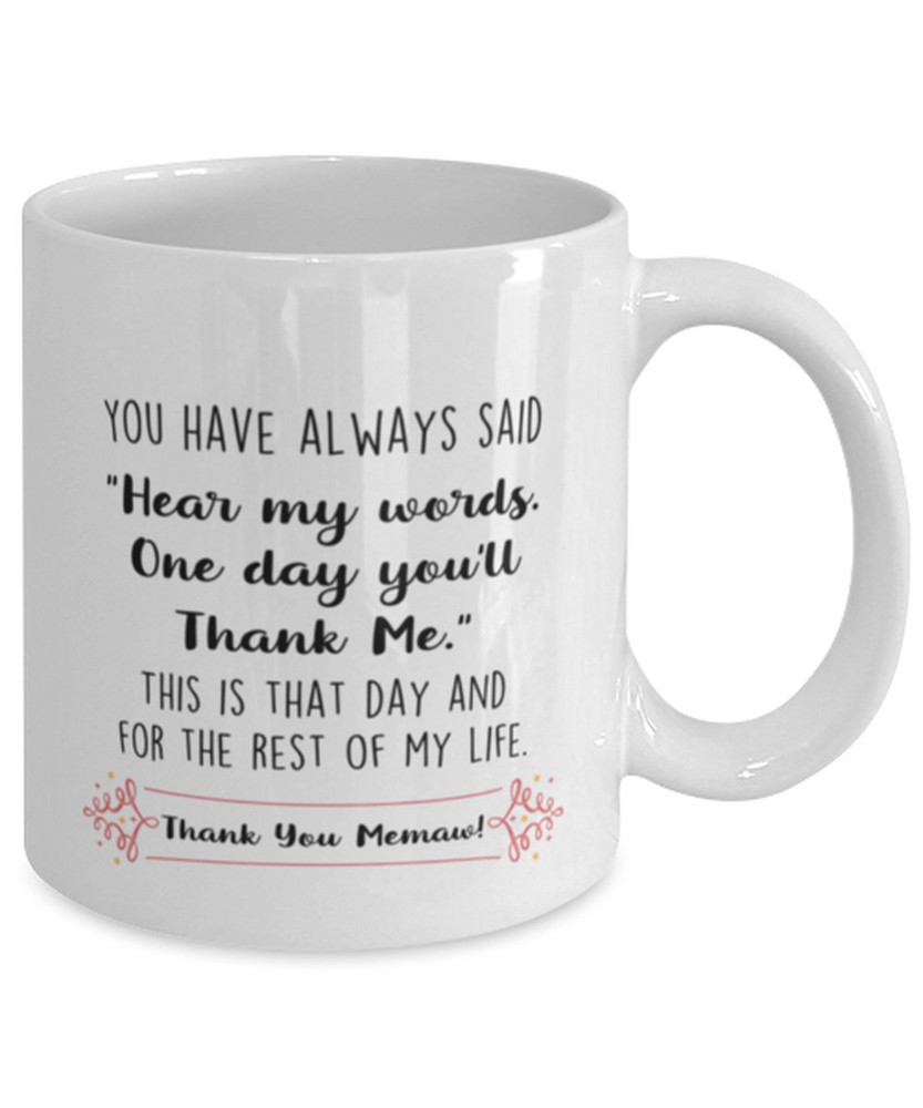Mothers Day Mug For Memaw Mother Day Gift Memaw Memaw Mug Grandson To Memaw Gift Product Details.. This high quality 11oz. ceramic white mug has a premium hard coat that provides crisp and vibrant color reproduction sure to last for years. Perfect for all hot & cold beverages. The highest quality printing possible is used. It will never fade no matter how many times you wash it. Material: 100% Ceramic. Print both sides. Dishwasher and Microwave Safe. High Gloss + Premium White Finish. Printed in the U.S.A. Personalized & Custom. We support personalized and custom mug to add custom, when placing an order, you can add notes to the "order note" in shipping address section. Also you can contact us directly via message. Shipping Info. Ready to ship in 1 to 2 business days, All products are made-to-order and proudly printed in the United States. Shipped by USPS and DHL, You will receive your order in 5-7 days. Replace & Refund. All products are defective during shipping broken, chipped will be replaced free of charge. You are not satisfied with the product, we will refund 100% money to you. If any other issues arise, please do not hesitate to message, we would be more than happy to assist you.