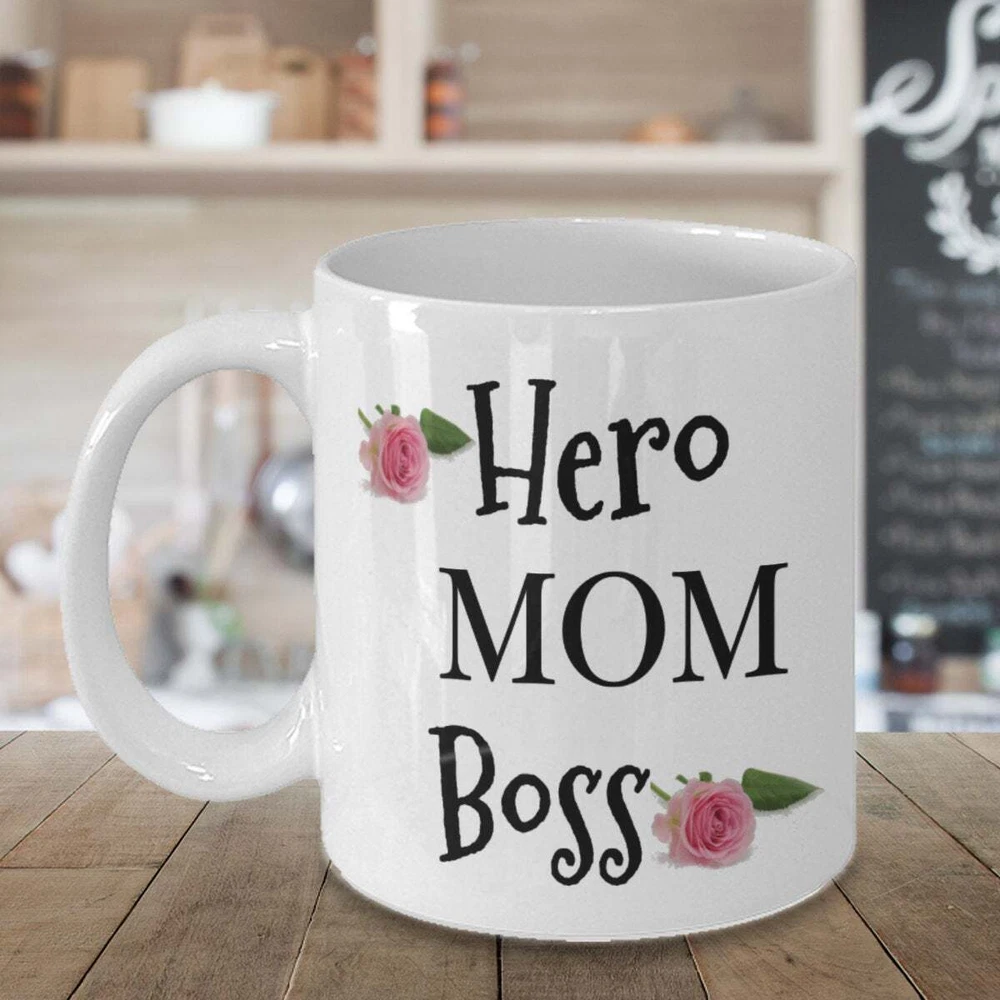 Mothers Day Mug Gift Hero Mom Boss Coffee Mug Ceramic Mug Gift For Hero Mom Boss Product Details.. This high quality 11oz. ceramic white mug has a premium hard coat that provides crisp and vibrant color reproduction sure to last for years. Perfect for all hot & cold beverages. The highest quality printing possible is used. It will never fade no matter how many times you wash it. Material: 100% Ceramic. Print both sides. Dishwasher and Microwave Safe. High Gloss + Premium White Finish. Printed in the U.S.A. Personalized & Custom. We support personalized and custom mug to add custom, when placing an order, you can add notes to the "order note" in shipping address section. Also you can contact us directly via message. Shipping Info. Ready to ship in 1 to 2 business days, All products are made-to-order and proudly printed in the United States. Shipped by USPS and DHL, You will receive your order in 5-7 days. Replace & Refund. All products are defective during shipping broken, chipped will be replaced free of charge. You are not satisfied with the product, we will refund 100% money to you. If any other issues arise, please do not hesitate to message, we would be more than happy to assist you.