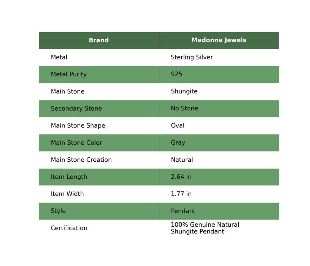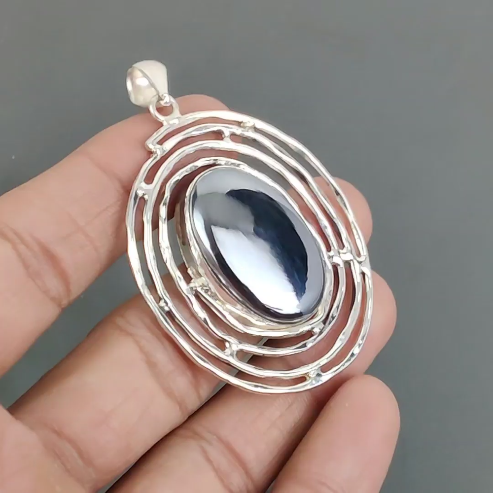 Welcome to Madonna Jewels Mothers day Sale Oval Shungite Stone Bezel Wife New Pendant Jewelry 925 Silver Handmade Pendant, Sterling Silver Pendant, Shungite Pendant, Handcrafted Pendant SKU : VP-1589 Gemstone : Shungite Stone Shape : Oval Metal Purity : 925 Sterling Silver Length : 67 Millimeters Width : 45 Millimeters Silver Jewelry is a popular choice for many people due to its unique properties and numerous benefits. Here are some of the key properties and benefits of wearing silver jewelry: Properties: Durability: Silver is a durable metal that can withstand regular wear and tear. Malleability: Silver is highly malleable, which means it can be easily shaped and molded into various designs. Conductivity: Silver is an excellent conductor of heat and electricity. Anti-bacterial: Silver has natural anti-bacterial properties, which can help prevent the growth of harmful bacteria. Benefits: Aesthetic appeal: Silver jewelry is known for its beauty and versatility, and can be worn with a variety of outfits and styles. Hypoallergenic: Silver is generally hypoallergenic, which means it is unlikely to cause an allergic reaction in most people. Healing properties: Some people believe that wearing silver jewelry can help with various physical and emotional conditions, such as arthritis, anxiety, and depression. Spiritual significance: Silver has been used in various cultures for its spiritual and symbolic significance, and wearing silver jewelry can help to connect with these traditions. Investment value: Silver is a precious metal that retains its value over time, and investing in silver jewelry can be a smart financial decision. Overall, silver jewelry offers a unique combination of beauty, durability, and benefits, making it a popular choice for people around the world. For Mother's Day Gift For Father's Day Gift For Promise For Valentine' Day For Halloween Party For Christmas Day Gift For New Year Party For Mom For Her If you can't find the information you need or need some advice for your design? Feel free to contact us. We are fast to reply :) All our work is made by hand with Love and Care in our workshop Thank you so much for visiting and hope you enjoy shopping with us Madonna Jewels is dedicated to providing customers with high-quality sterling silver jewelry. As a manufacturer of handmade jewelry, we offer an extensive range of silver gemstone jewelry that demonstrates our exceptional craftsmanship. We are skilled in adorning gemstones to complement any style, and we give you the freedom to design your own jewelry collection with dazzling, natural, and genuine gemstones. Our talented craftsmen carefully handcraft each jewelry piece, ensuring that it is unique and made with authentic gemstones. The jewelry item you see on our website is precisely the same one you will receive.