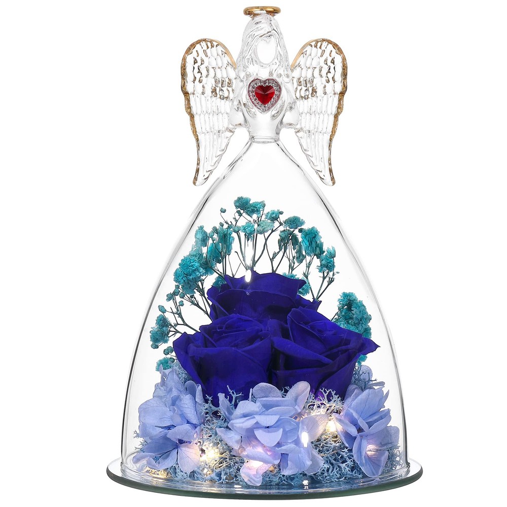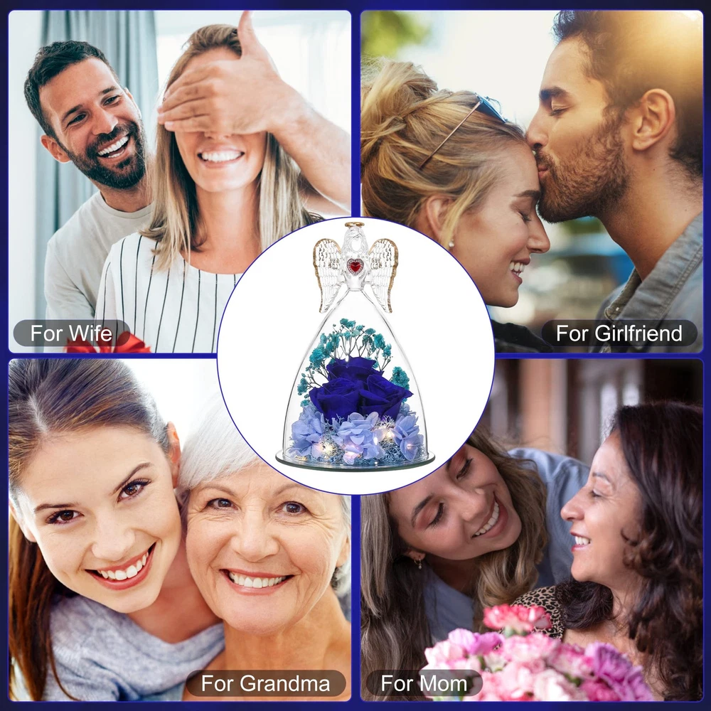 Large Angel with Real Rose Preserved Real Flowers Rose Gifts for Women Mom Girlfriend, Glass Angel Figurines Gifts with Rose for her Angel Size: 6.69"H x 4.13"W x 4.13"D Patented Angel Figurines and Inside Rose Flower Bouquet 【Large Rose with Real Rose Inside】Beauty Angel Height: 6.69inch (17cm) Bottom diameter 4.13inch(10.5cm),REAL Roses Gift that Lasts Forever| Fresh Flowers for Delivery Prime | Angel Roses for Her, Mom, Wife,Girlfriend, Anniversary,Christmas 【Preserved Real Flower Rose】Preserved flower is made of rose with unique preservation process. Also Known as“ never withered flower ” and “ eternal flower ”. Stand for your Endless Love,Handmade preserved flower roses lasting 3 - 5 years without watering and daily conservation, need to avoid sunlight to retain the color of the rose; 【High Quality, individually hand-crafted glass Beauty Angel figurine】 Angel decoration always represents best wishes and guardian, with forever real rose inside,it stands for eternal love and best wishes for girlfriend, wife, mom,Best Gift for loved ones; 【UNIQUE GIFT,Mothers Day Gift】 Angel with Rose is a symbol of love and best wishes, the angel with preserved real flower rose will be a lovely gift for Thanksgiving, Christmas, Valentine's Day, birthday, Mother's Day,anniversaries, or any other special occasions and festivals, which will show your eternal love for him or her. 【What you get】Elegant Angel Figurines with preserved Forever Real rose,Gift Card,Protection Gift Box