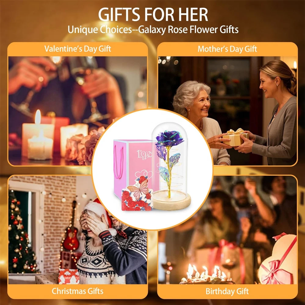 11 【Mothers Day Gifts For Mom Rose Flowers】-A timeless tribute to mothers, our artificial preserved flower collection features galaxy roses. They are the best Mothers Day rose flower gifts for Mom women her.They’re artificial preserved roses that never wither, embodying both infinite hope and beauty. 【Birthday Gifts For Women Mom】-This preserved rose makes an outstanding birthday gift for women. It’s also perfect for various special occasions—whether it’s Mother’s Day, Valentine’s Day, Christmas, or anniversaries. Ideal for moms, wives, girlfriends, daughters, sisters,new moms and grandmas, it’s a romantic present that suits weddings,marriage proposals, apologies, and New Year’s celebrations. 【Mothers Day Rose Flower Gifts for Her】-Mother’s Day gifts for wives, girlfriends, daughters, and presents for moms. Light up rose gifts for moms and other women. Powered by 3 AAA batteries (not included), the LED strip light wrapped around the rose emits a warm white glow. This LED rose light can be used both during the day and at night. It’s a great home decor gift, and it also sets a romantic mood for her. The LED glass dome rose symbolizes women’s Mother’s Day gifts of appreciation, best wishes, love, passion, and romance. 【Mothers Day Gifts For Grandma】-I Love You Gifts For Her. Mother’s Day gifts for grandmas are truly unique. The color of the crystal rose inside the glass dome changes with different angles and lighting. It gives her a romantic and warm Mother's Day gift for grandmas, moms, girlfriends, wives, and other women. 【Mothers Day Gifts From Daughter Son Husband】-Rose gifts from daughters, sons, or husbands are always a wonderful surprise. They create a bright and romantic atmosphere during family dinners, weddings, parties, and more. These are wonderful Mother’s Day gifts for moms, guaranteed to sweeten their day. 【Best Choice With Giftable Package】- Each gift set includes 1 preserved eternal rose, 1 pink gift box, and 1 greeting card. It’s ready to be gifted right out of the box, saving you time on packaging. 【Shop with Confidence】-Our Mother’s Day preserved rose gift set is a top choice for celebrating Mother’s Day. It’s also a fantastic birthday gift for girlfriends. Whether you’re a son, daughter, or husband, it’s the perfect way to express love. If you have any issues during the purchase or use of the product, don’t hesitate to contact us. We’re dedicated to resolving any problems you may have.