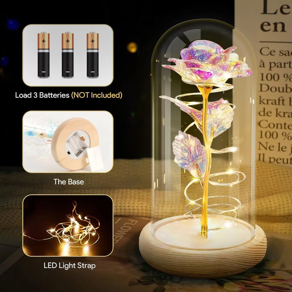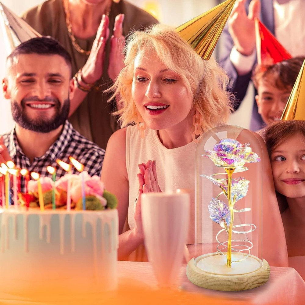 11 【Mothers Day Gifts For Mom Rose Flowers】-A timeless tribute to mothers, our artificial preserved flower collection features galaxy roses. They are the best Mothers Day rose flower gifts for Mom women her.They’re artificial preserved roses that never wither, embodying both infinite hope and beauty. 【Birthday Gifts For Women Mom】-This preserved rose makes an outstanding birthday gift for women. It’s also perfect for various special occasions—whether it’s Mother’s Day, Valentine’s Day, Christmas, or anniversaries. Ideal for moms, wives, girlfriends, daughters, sisters,new moms and grandmas, it’s a romantic present that suits weddings,marriage proposals, apologies, and New Year’s celebrations. 【Mothers Day Rose Flower Gifts for Her】-Mother’s Day gifts for wives, girlfriends, daughters, and presents for moms. Light up rose gifts for moms and other women. Powered by 3 AAA batteries (not included), the LED strip light wrapped around the rose emits a warm white glow. This LED rose light can be used both during the day and at night. It’s a great home decor gift, and it also sets a romantic mood for her. The LED glass dome rose symbolizes women’s Mother’s Day gifts of appreciation, best wishes, love, passion, and romance. 【Mothers Day Gifts For Grandma】-I Love You Gifts For Her. Mother’s Day gifts for grandmas are truly unique. The color of the crystal rose inside the glass dome changes with different angles and lighting. It gives her a romantic and warm Mother's Day gift for grandmas, moms, girlfriends, wives, and other women. 【Mothers Day Gifts From Daughter Son Husband】-Rose gifts from daughters, sons, or husbands are always a wonderful surprise. They create a bright and romantic atmosphere during family dinners, weddings, parties, and more. These are wonderful Mother’s Day gifts for moms, guaranteed to sweeten their day. 【Best Choice With Giftable Package】- Each gift set includes 1 preserved eternal rose, 1 pink gift box, and 1 greeting card. It’s ready to be gifted right out of the box, saving you time on packaging. 【Shop with Confidence】-Our Mother’s Day preserved rose gift set is a top choice for celebrating Mother’s Day. It’s also a fantastic birthday gift for girlfriends. Whether you’re a son, daughter, or husband, it’s the perfect way to express love. If you have any issues during the purchase or use of the product, don’t hesitate to contact us. We’re dedicated to resolving any problems you may have.