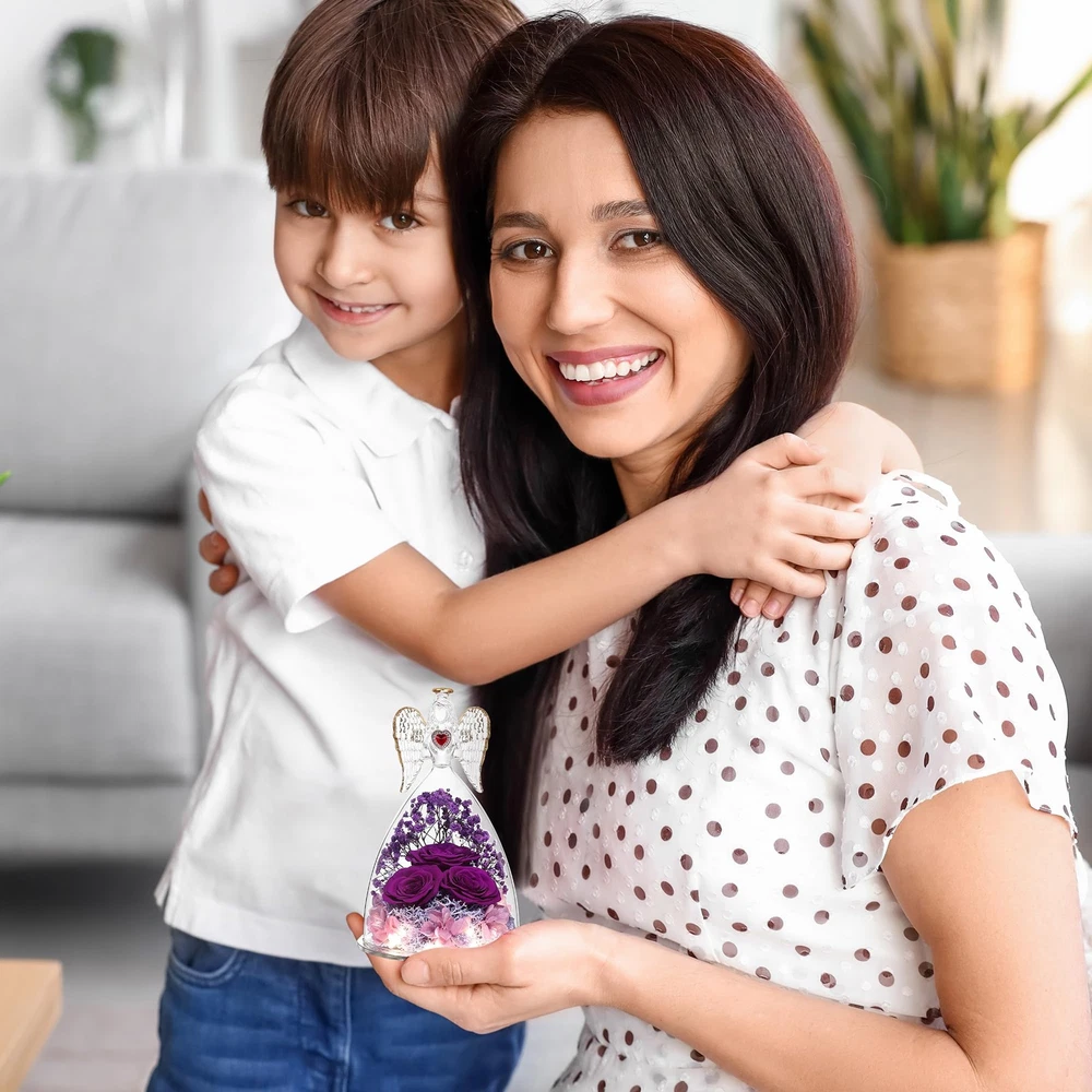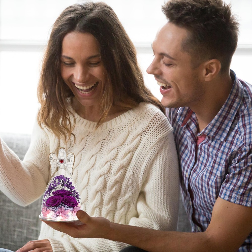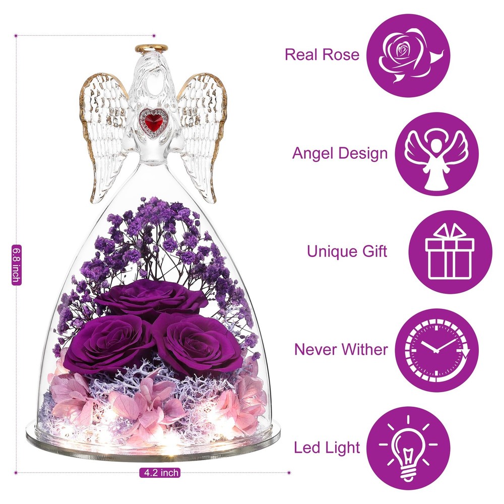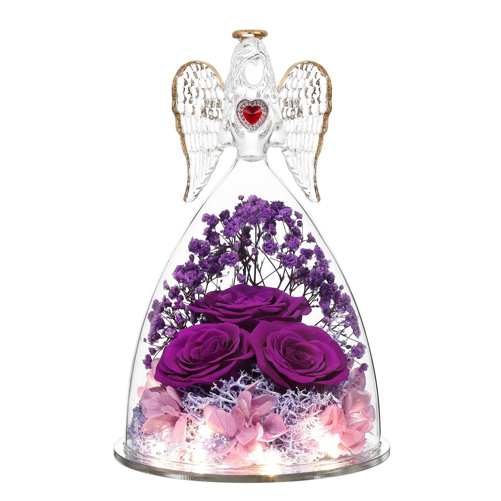Angel figurine with three preserved flower real roses represents love and guardianship. Perfect angel gifts for women, angel rose gift for mum, grandma, daughter, girlfriend, wife on birthday, Valentine's Day, Mother's Day, Christmas, etc;The Preserved flower rose can last about 3-5 years,no watering and avoid direct sunlight,easy to care. Preserved Flower Rose Gifts: Preserved flower rose are made of real roses with high-tech treatment which are never wither. The creative three preserved flower roses placed in the angel figurines is a unique and ideal gift for Women. Meaningful Angel Rose Gifts: Angel represents guardianship and blessing, and eternal roses symbolize eternal sincere love. Multiple Occasions:Gifts for mom,grandma,girlfriend,wife,sister,daught,friend or teacher,colleague.It can also be used as a gift for birthday,mother's Day,christmas,valentines day,anniversary,thanksgiving and other holiday occasions. Home&Office Decoration: Great decorations for living room, bedroom, study, putting it on the table also a warm atmosphere to your office. Package and Tips:Each product comes with a angel figurines with three beautiful preserved flower roses inside, a exquisiting festival gifts package.gift bag and a blank greeting card on which you can write your best wishes. Glass is fragile, please keep it out of the reach of children and pets.