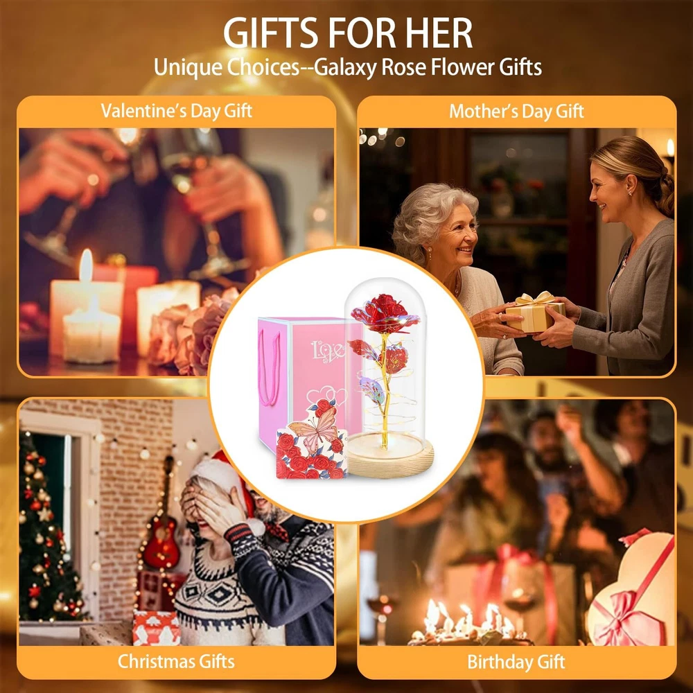 Exclusive Offers Await! Welcome to our stores! Satisfaction is what we guarantee. Mothers Day Rose Gifts for Mom,Birthday Gifts for Women,Red Rose Flowers for Mom- Mothers Day Flower Gifts from Daughter or Son,Gift for Sister,Her,Grandma,Wife Christmas and Valentines Day Product Overview 11 Key Features 【Mothers Day Gifts For Mom Rose Flowers】-A timeless tribute to mothers, our artificial preserved flower collection features galaxy roses. They are the best Mothers Day rose flower gifts for Mom women her.They’re artificial preserved roses that never wither, embodying both infinite hope and beauty. 【Birthday Gifts For Women Mom】-This preserved rose makes an outstanding birthday gift for women. It’s also perfect for various special occasions—whether it’s Mother’s Day, Valentine’s Day, Christmas, or anniversaries. Ideal for moms, wives, girlfriends, daughters, sisters,new moms and grandmas, it’s a romantic present that suits weddings,marriage proposals, apologies, and New Year’s celebrations. 【Mothers Day Rose Flower Gifts for Her】-Mother’s Day gifts for wives, girlfriends, daughters, and presents for moms. Light up rose gifts for moms and other women. Powered by 3 AAA batteries (not included), the LED strip light wrapped around the rose emits a warm white glow. This LED rose light can be used both during the day and at night. It’s a great home decor gift, and it also sets a romantic mood for her. The LED glass dome rose symbolizes women’s Mother’s Day gifts of appreciation, best wishes, love, passion, and romance. 【Mothers Day Gifts For Grandma】-I Love You Gifts For Her. Mother’s Day gifts for grandmas are truly unique. The color of the crystal rose inside the glass dome changes with different angles and lighting. It gives her a romantic and warm Mother's Day gift for grandmas, moms, girlfriends, wives, and other women. 【Mothers Day Gifts From Daughter Son Husband】-Rose gifts from daughters, sons, or husbands are always a wonderful surprise. They create a bright and romantic atmosphere during family dinners, weddings, parties, and more. These are wonderful Mother’s Day gifts for moms, guaranteed to sweeten their day. 【Best Choice With Giftable Package】- Each gift set includes 1 preserved eternal rose, 1 pink gift box, and 1 greeting card. It’s ready to be gifted right out of the box, saving you time on packaging. 【with Confidence】-Our Mother’s Day preserved rose gift set is a top choice for celebrating Mother’s Day. It’s also a fantastic birthday gift for girlfriends. Whether you’re a son, daughter, or husband, it’s the perfect way to express love. If you have any issues during the purchase or use of the product, don’t hesitate to us. We’re dedicated to resolving any problems you may have. Payment Information ★ Secure payments through eBay. ★ We accept PayPal and all major credit cards. ★ Immediate payment required upon purchase. ★ For any payment issues, please contact our support team. Shipping Information ★ Orders are shipped to the address provided during checkout. Please verify your address. ★ We process orders within 1 business day (excluding weekends and holidays). ★ Standard delivery time is 3-5 business days. ★ We use trusted carriers like UPS, FedEx, and USPS. ★ Shipping is only available within the contiguous United States. No shipping to Alaska, Hawaii, Puerto Rico, or PO Boxes. ★ If there are any shipping delays, please contact us for support. Return Policy ★ We offer a 30-day return policy. ★ If you are not satisfied with your purchase, you can return it within 30 days for a full refund. ★ Please contact us to obtain the return address before sending back any items. ★ Items must be returned in their original condition and packaging.